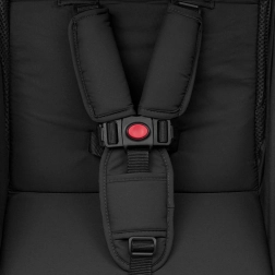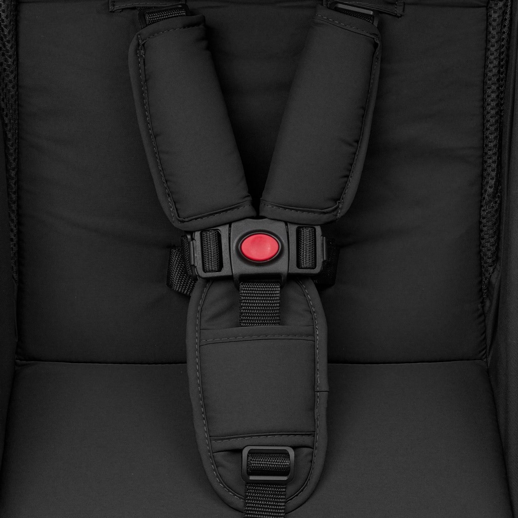 Le confort est assuré par un dossier réglable de la position assise à semi‑allongée, un repose‑pieds ajustable et une barre de sécurité amovible. Un coupe‑vent pratique, protégeant du froid et du vent, fait partie de l’équipement. La sécurité est renforcée par un verrouillage automatique anti‑ouverture et un frein arrière centralisé. Le produit est conforme à la norme EN 1888.