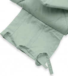 Grâce aux trois rangées de rubans, la couverture s’adapte facilement et en toute sécurité à la taille de bébé. Elle ne contient ni boutons ni éléments durs en plastique ou en métal, rien ne comprime et aucun risque d’irritation. La certification OEKO-TEX STANDARD 100 garantit que les matériaux répondent à des exigences strictes de sécurité pour les nourrissons.