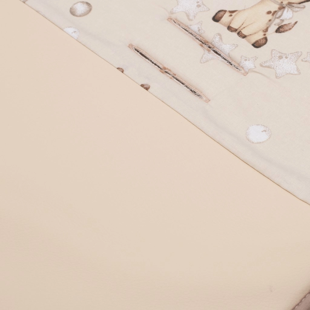 La partie inférieure en similicuir éco protège la zone la plus sollicitée près des pieds contre la saleté et l’humidité, rendant le nettoyage rapide et facile. L’insert amortit également les irrégularités et protège le revêtement d’origine de la poussette contre l’usure.
