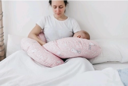 - Forme ergonomique en C : enveloppement naturel pour des positions confortables lors de l’allaitement et du sommeil.