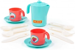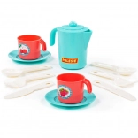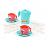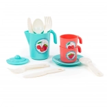 - Théière avec couvercle, 2 tasses, 2 soucoupes, couverts en plastique