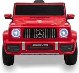 La voiture électrique sous licence MERCEDES-BENZ G63 AMG Baby Mix séduit par sa finition soignée et ses détails authentiques – du volant sport et du tableau de bord lisible aux roues stylées avec logo Mercedes et aux portes entièrement ouvrantes. Grâce aux phares LED et à son allure robuste, elle ressemble à un vrai véhicule de la classe G.