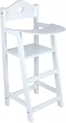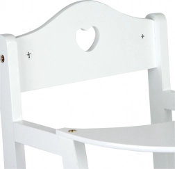 Cette chaise haute en bois pour poupées, d’un blanc pur, est un accessoire stylé pour la chambre d’enfant comme pour le salon. La discrète découpe en cœur dans le dossier apporte une touche adorable, tandis que la structure robuste assure un jeu sûr et durable.