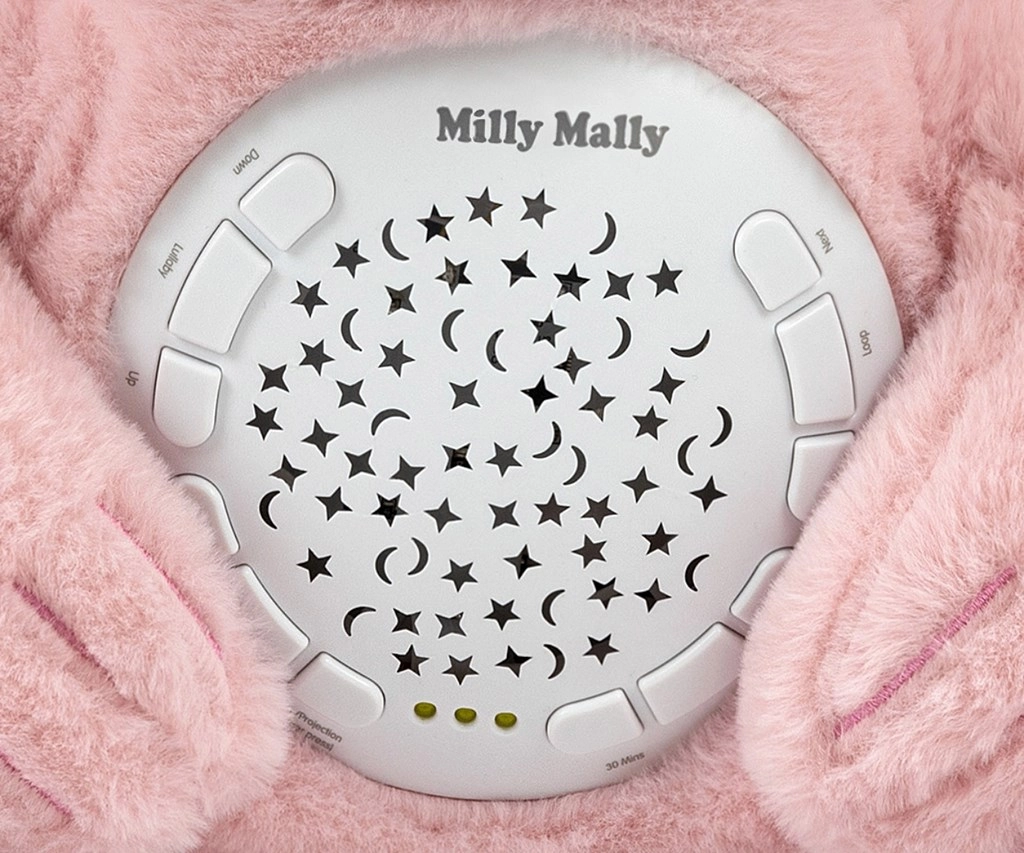 L’ourson en peluche MILLY MALLY apporte aux enfants un sommeil paisible et un sentiment de sécurité. Le projecteur intégré projette au plafond et sur les murs de douces étoiles, tandis que les mélodies apaisantes et le bruit blanc aident à se détendre et à s’endormir plus facilement. Sa matière douce et moelleuse invite aux câlins et convient dès la naissance.