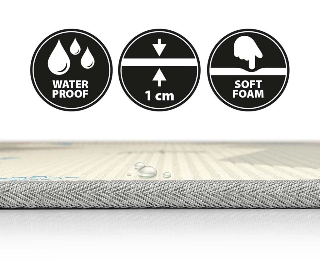 - Surface antidérapante et imperméable – jeu en toute sécurité et nettoyage facile.