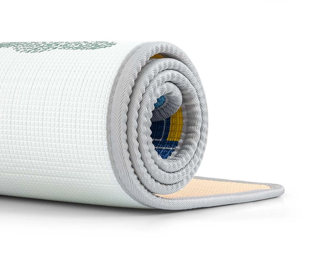 Le matériau XPE est sans formamide, phtalates, PVC ni BPA, anti-allergique et facile à entretenir – il suffit d’essuyer avec un chiffon humide. Le tapis est léger, se roule et se range facilement, idéal aussi en voyage ou pour une utilisation extérieure sur surface plane. Conforme aux normes de sécurité européennes EN 71.