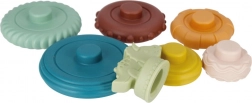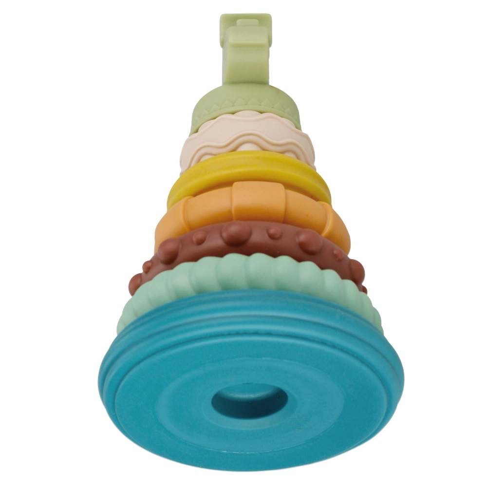 Chaque anneau possède une surface différente – rainures, reliefs et ondulations. Stimule la perception sensorielle et l’exploration naturelle du monde avec les doigts et la bouche.