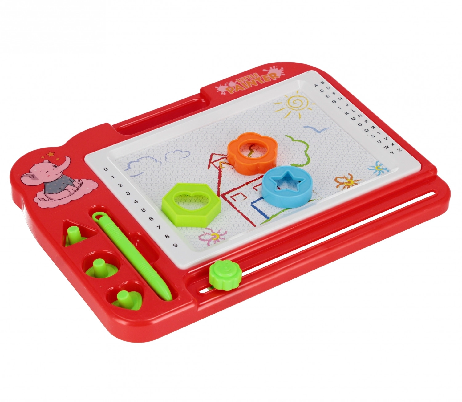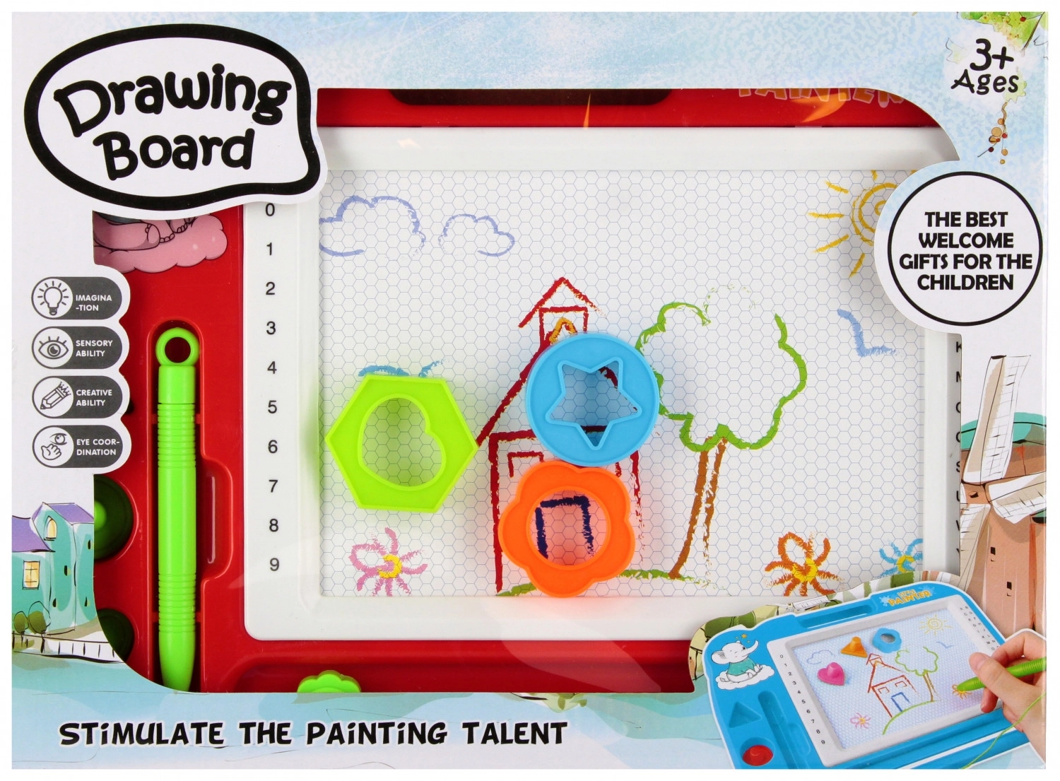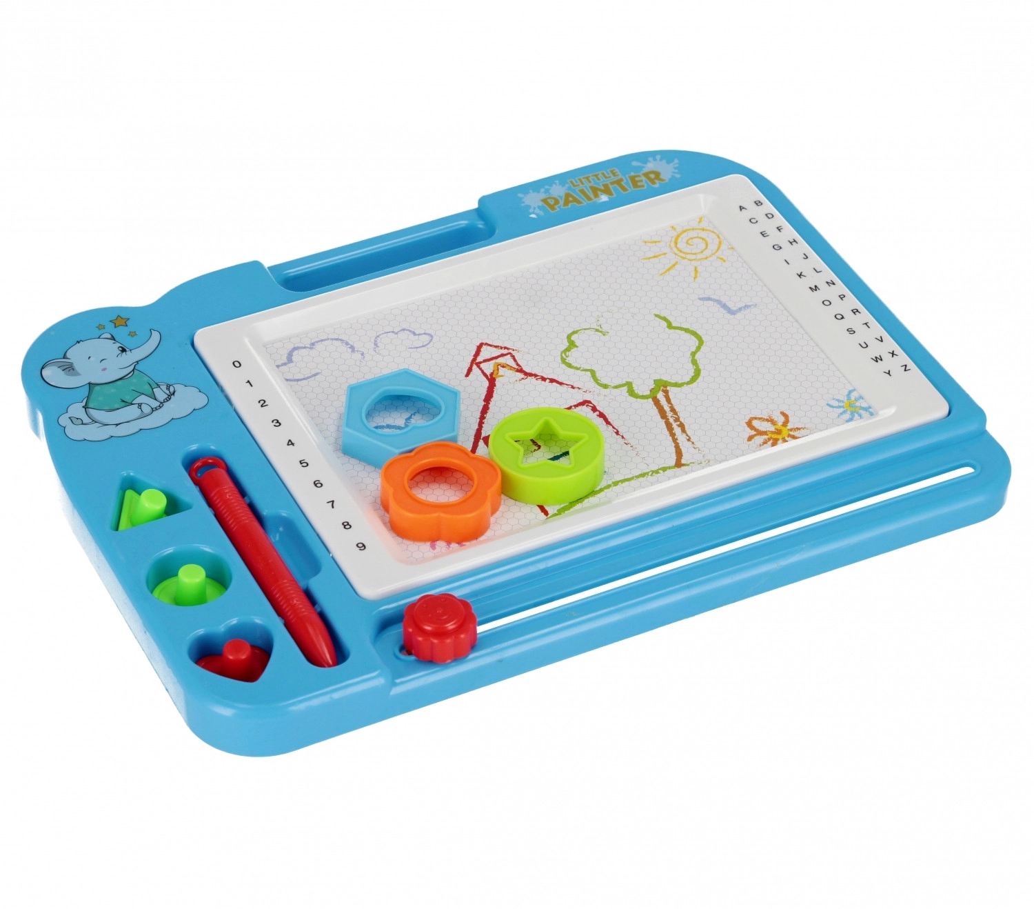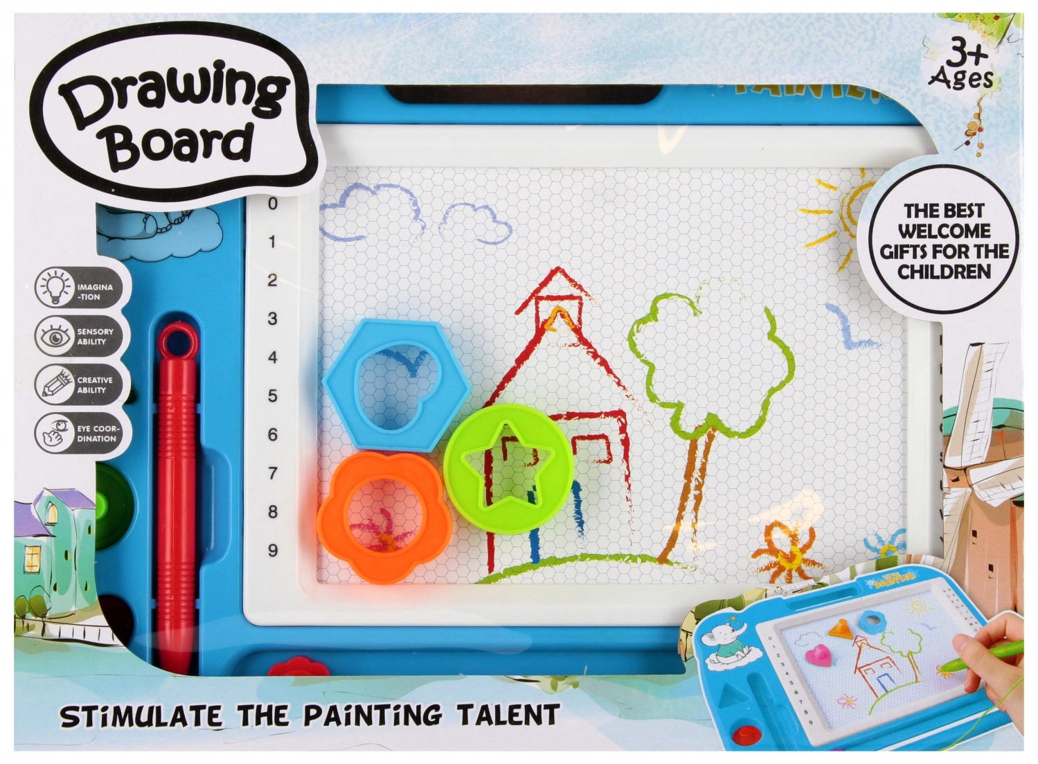 Cette tablette de dessin magique offre un moyen simple et propre pour les enfants d’exprimer leur imagination. À l’aide du stylet magnétique et des tampons en forme, les enfants dessinent sur la surface blanche et effacent facilement d’un seul geste grâce à la gomme coulissante. Légère, robuste et agréable à tenir grâce à sa poignée pratique.