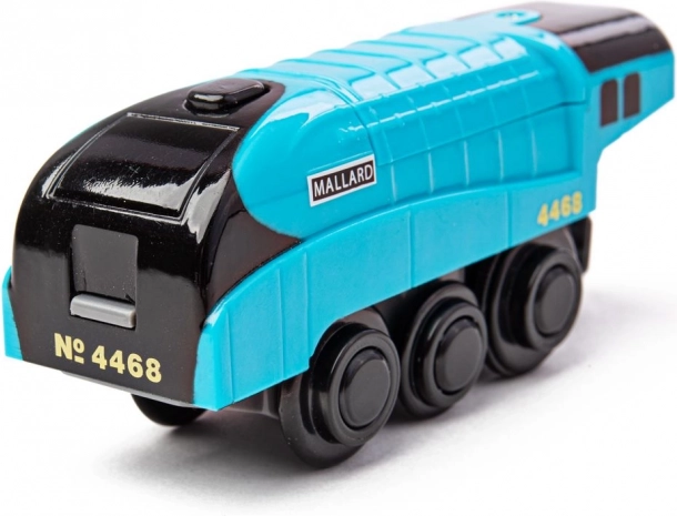 La locomotive électrique Mallard se distingue non seulement par son design bleu marqué, mais aussi par sa capacité à tirer d’autres wagonnets grâce à son système magnétique. Son contrôle simple avec un seul bouton sur la cheminée vous séduira par sa facilité d’utilisation. La machine est alimentée par 2 piles AAA, non incluses.
