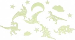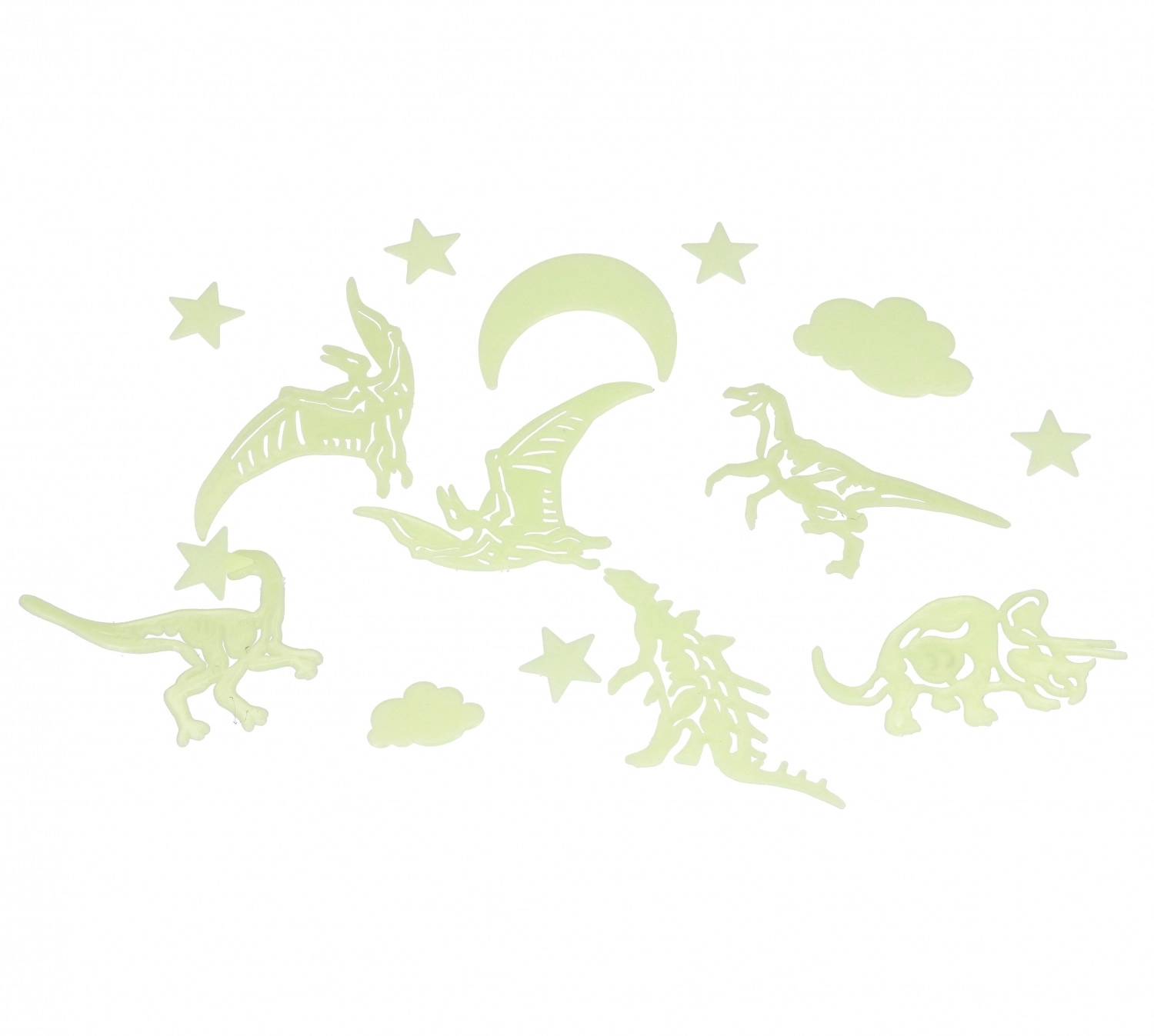 Transformez la chambre en un monde magique de dinosaures. Les autocollants lumineux se fixent facilement sur les surfaces lisses et, après exposition à la lumière, émettent une lueur agréable dans l’obscurité. Idéal comme décoration au-dessus du lit, du bureau ou sur la porte.