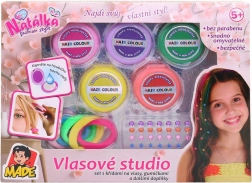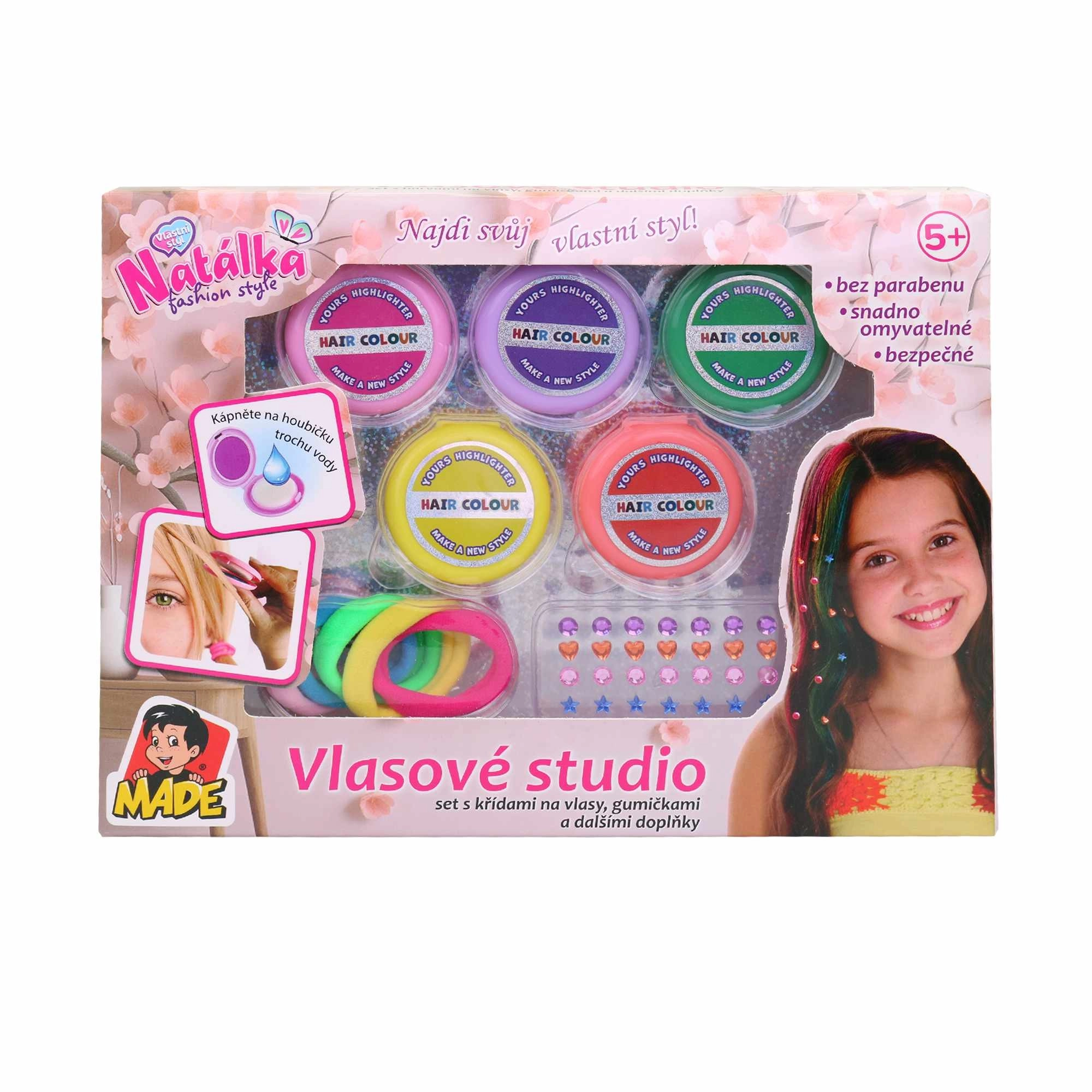Transforme la coiffure de tous les jours en un style créatif avec le set studio coiffure pour enfants. Grâce à son utilisation simple, les enfants peuvent créer des mèches colorées en un instant – sans désordre et sans attente inutile. Les couleurs sont douces pour les cheveux, faciles à laver et adaptées aux expériences répétées.