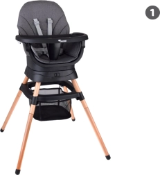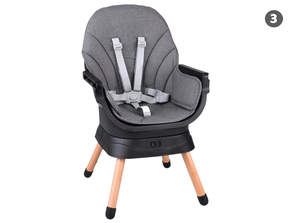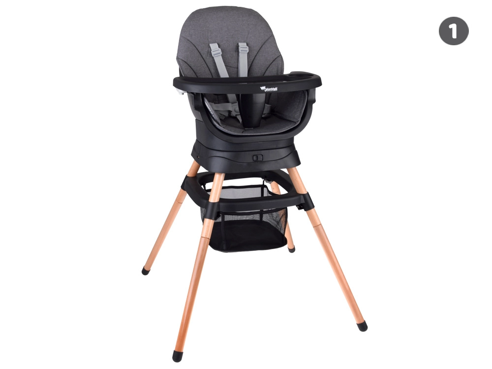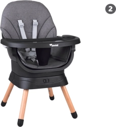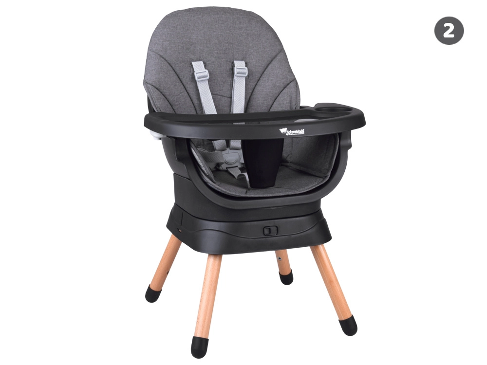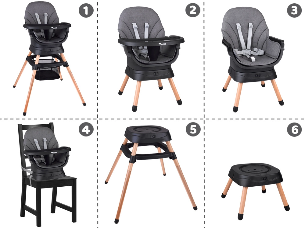 - 6 fonctions en une – chaise haute, chaise basse, fauteuil, rehausseur, tabouret haut, tabouret bas.