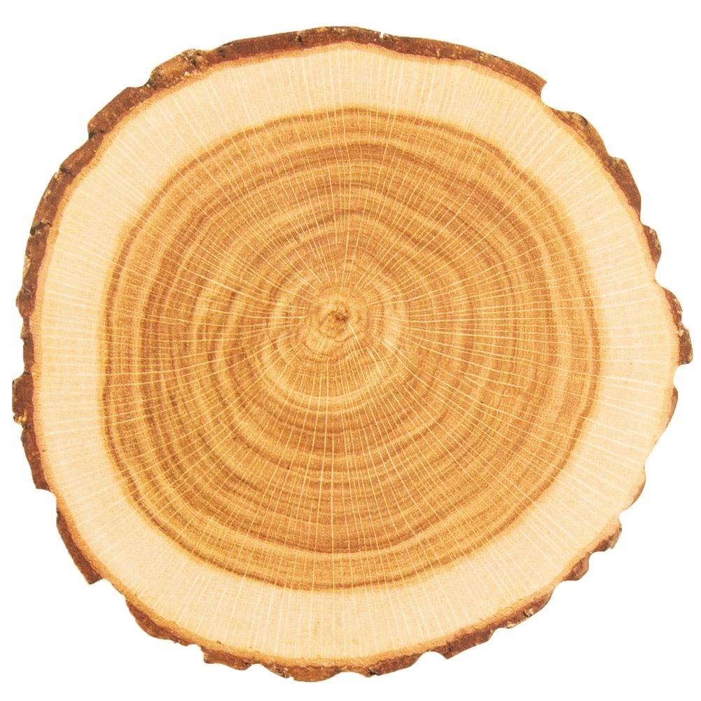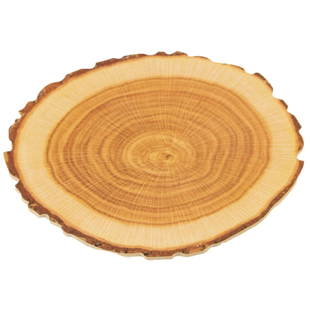 - Aspect naturel : motif réaliste de coupe de bois avec « écorce » sur le bord.