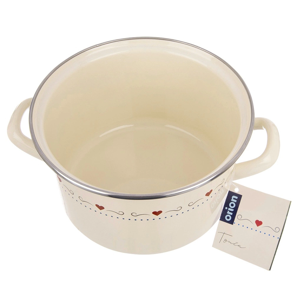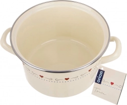 La marmite crème émaillée TONCA allie look rétro et fonctionnalité moderne. L’acier émaillé sain est lisse, facile à nettoyer et convient aux allergiques. Son élégant décor de petits cœurs et son rebord en inox confèrent durabilité et style pour la cuisson quotidienne et le service directement à table.