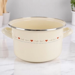 Marmite crème stylée en acier émaillé d’une capacité de 3 l avec motif de petits cœurs, idéale pour cuire et mijoter les plats du quotidien. Elle a un diamètre de 20 cm, une hauteur de 12 cm et se transporte aisément grâce à ses poignées ergonomiques robustes. Bord inox résistant, compatible lave-vaisselle et adaptée à tous types de plaques, y compris induction, ainsi qu’à l’utilisation au four, en font un accessoire pratique pour toute cuisine.
