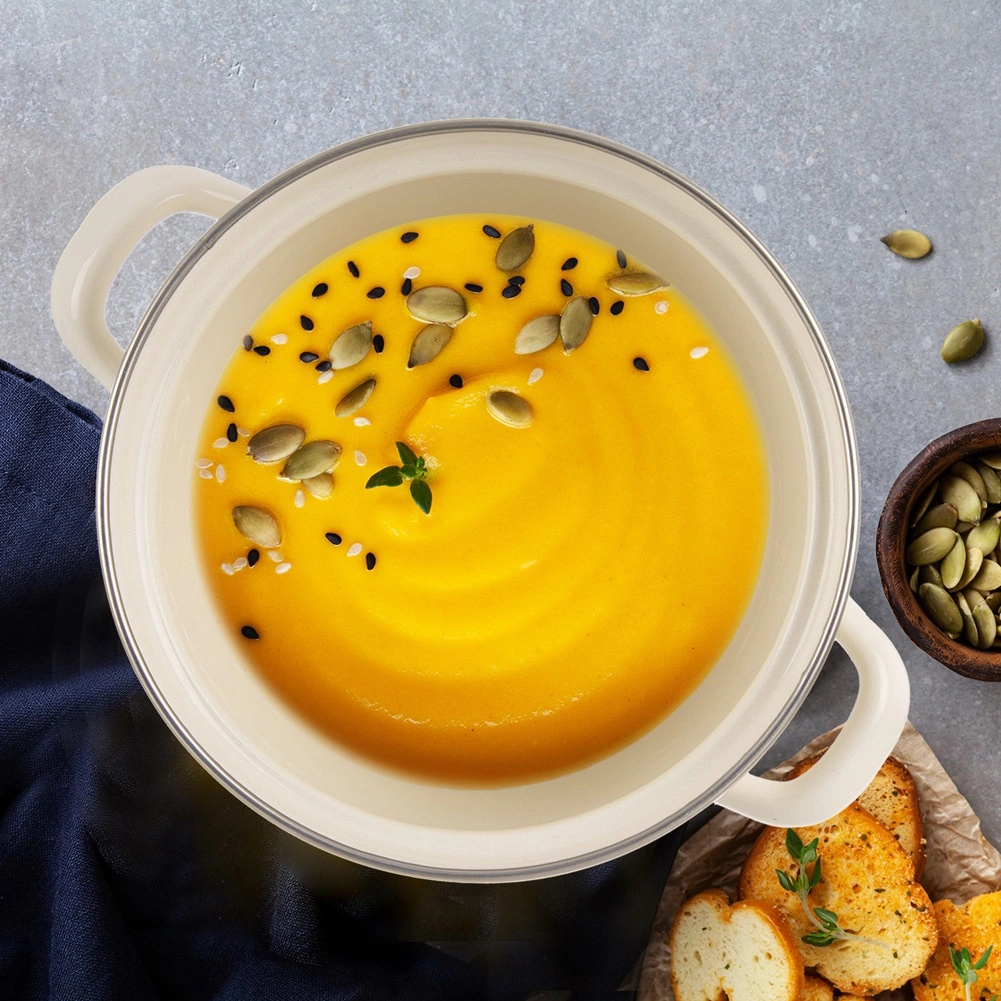 Grâce à son volume de 3 litres et à son large fond, elle est parfaite pour soupes, sauces, plats mijotés et réchauffage. Utilisable sur gaz, électricité, vitrocéramique, halogène et induction, ainsi qu’au four. Après cuisson, placez-la simplement au lave-vaisselle. Deux poignées robustes assurent une prise sûre lors de la manipulation.
