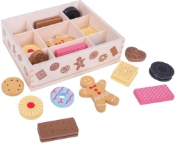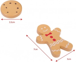 Découvrez la boîte en bois avec jouets biscuits, qui contient un assortiment de biscuits préférés, y compris des biscuits au gingembre et d'autres délices. Cet ensemble permet aux petits de développer leur créativité à travers un jeu inspiré par la pâtisserie.