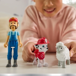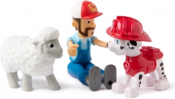 Marshall en équipement de pompier, le fermier Al et un adorable mouton – une combinaison parfaite pour des histoires de sauvetage et de ferme.