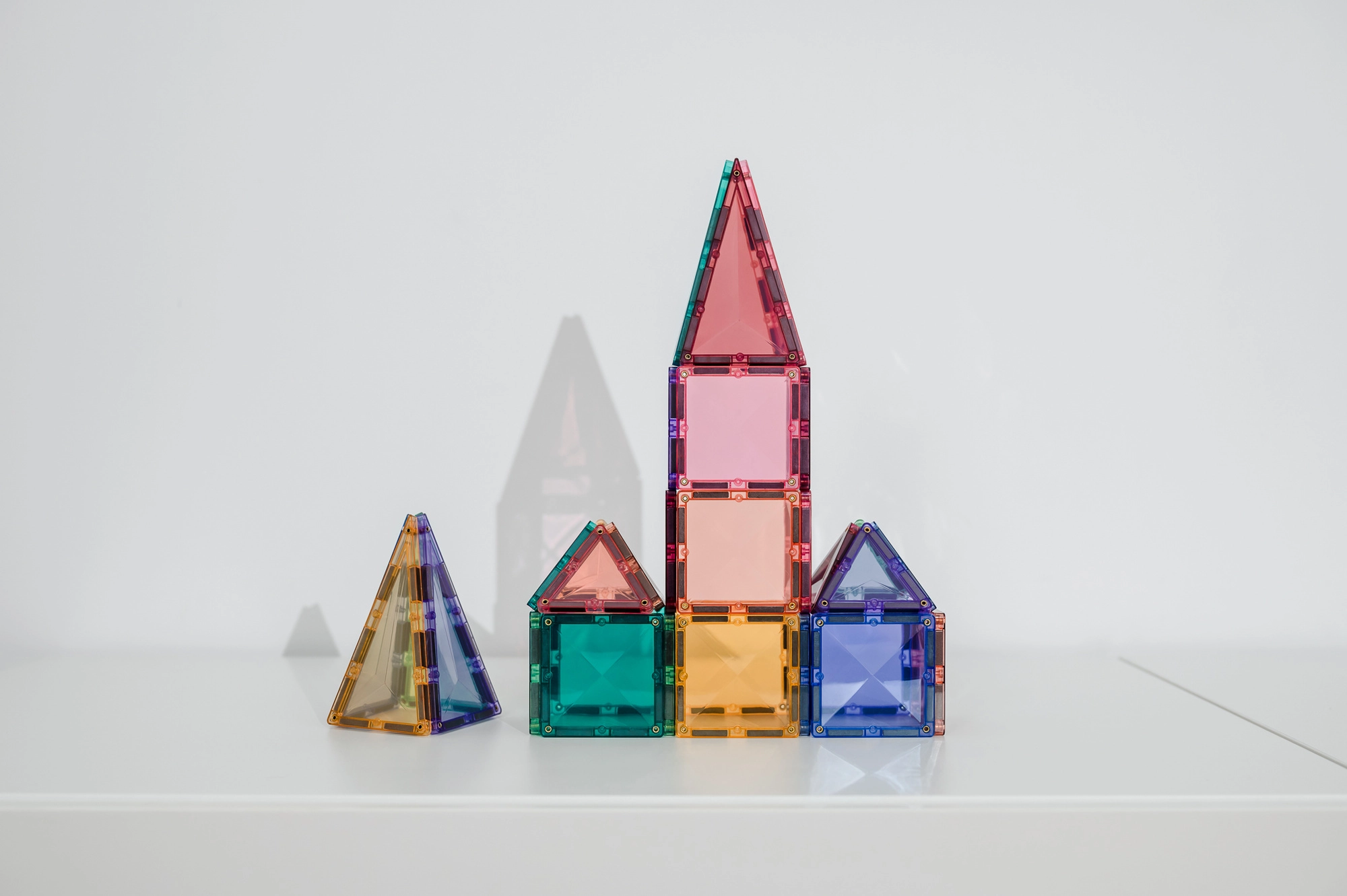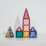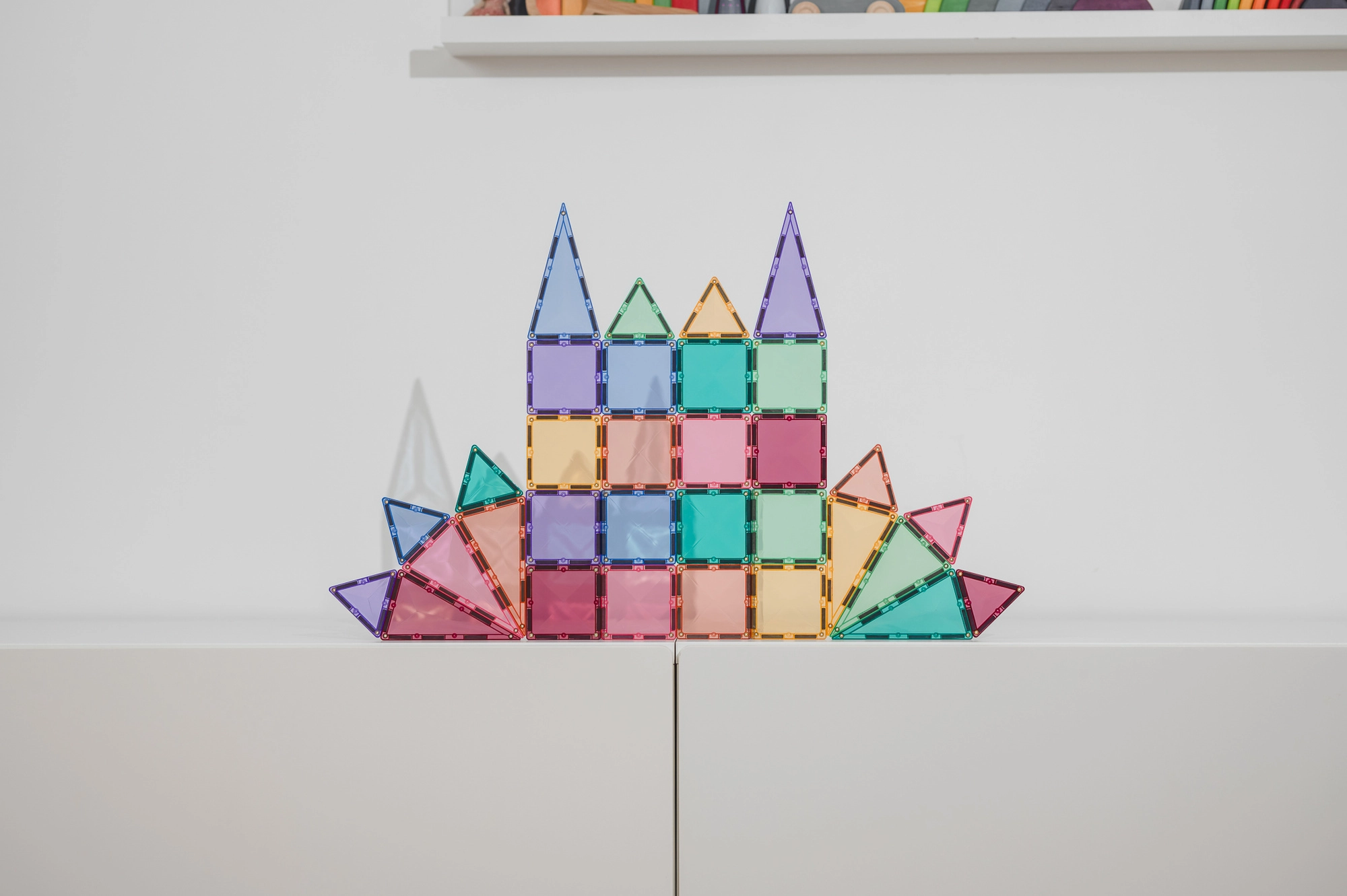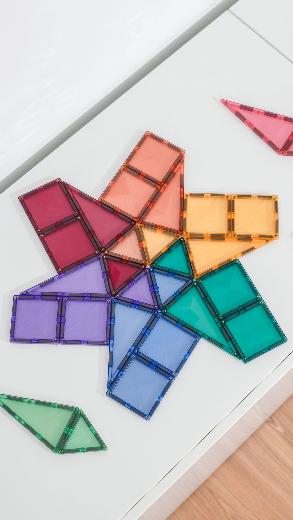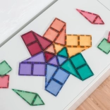 Le set comprend 16 petits carrés, 8 triangles équilatéraux et 8 triangles isocèles, ainsi qu’un livret illustré d’inspirations. Compatible avec les autres sets CONNETIX, il permet d’agrandir les constructions à l’infini. Les couleurs transparentes laissent magnifiquement passer la lumière et encouragent le jeu sensoriel.
