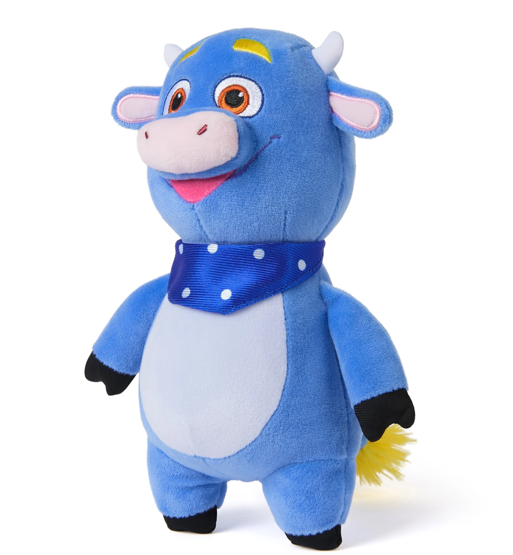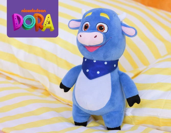 Adorable petit taureau en peluche Benny de la série populaire DORA L’EXPLORATRICE, qui fera plaisir à chaque enfant. Fabriqué dans un matériau extrêmement doux, il possède des détails brodés pour un jeu en toute sécurité et porte un foulard bleu caractéristique. Idéal comme doudou câlin et compagnon de jeux imaginatifs.