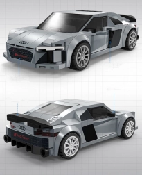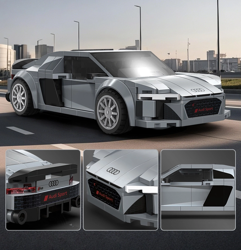 Ce kit licencié CaDA reproduit fidèlement les lignes agressives de la AUDI R8 Coupé (2019). Grâce à des pièces de qualité et à des impressions précises sans autocollants, la proue réaliste avec grille noire, les doubles prises d’air et les flancs épurés se démarquent. Une fois assemblé, le modèle mesure environ 14,5 × 7,2 × 4,2 cm et s’illustre parfaitement sur une étagère ou un bureau.