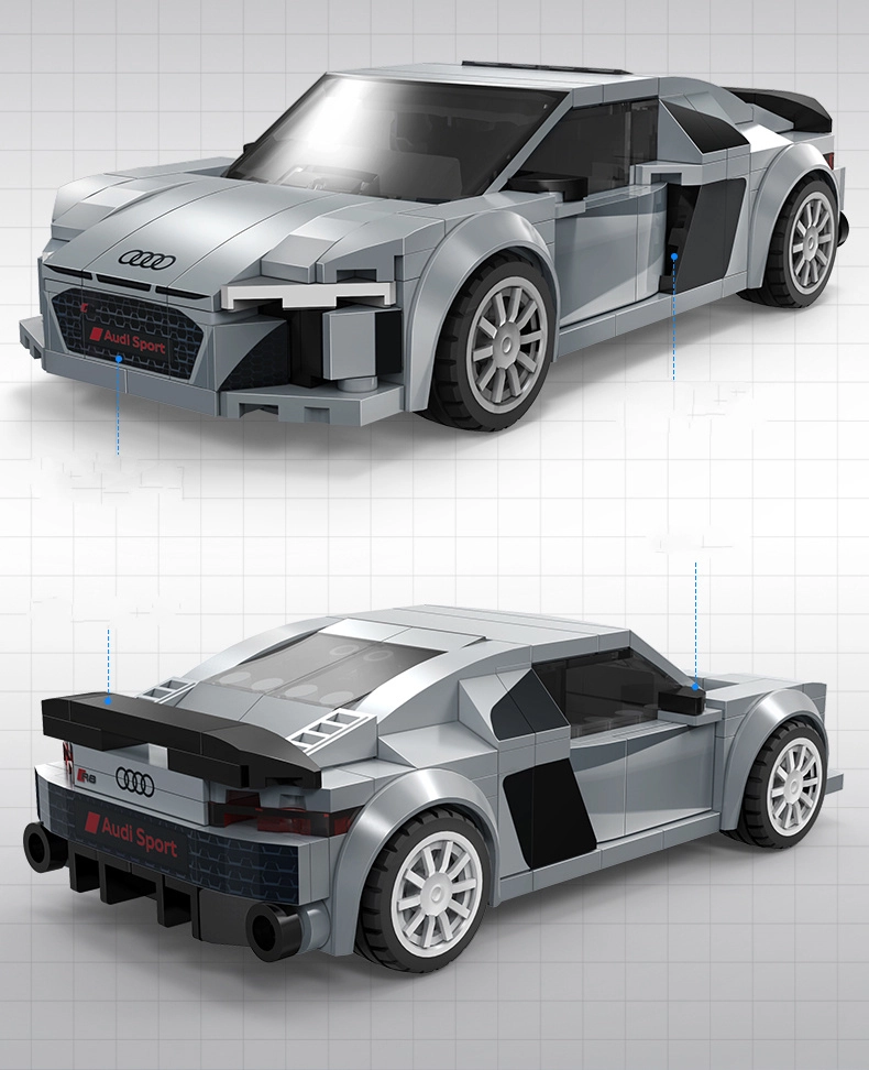 Les proportions fidèles et les lignes acérées de la R8 gagnent en authenticité grâce à la licence de la marque AUDI. Des détails comme la calandre avant, les prises d’air et les phares paraissent très réalistes.