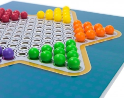 La clé de la victoire est de déplacer le plus vite possible tous vos pions vers la pointe opposée du plateau en étoile. Le jeu développe la pensée logique, la patience et la planification des coups. Parfait pour les soirées en famille, les rencontres entre amis et les voyages.