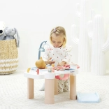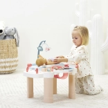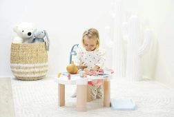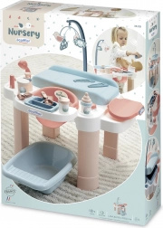La table en douces teintes pastel est idéale pour la chambre d’enfant. La petite baignoire avec bec verseur, les organiseurs pour biberons et ustensiles ainsi que le couvercle rabattable de la zone à langer garantissent ordre et clarté. 13 accessoires (biberons, cuillère, récipients, etc.) rendent le jeu captivant et réaliste.