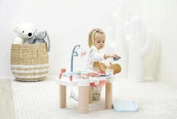 Stimulez l’imagination et la motricité fine des enfants avec ce centre de soins multifonction qui réunit trois zones de jeu – soins, repas et bain. Grâce à sa structure stable, ses formes agréablement arrondies et ses espaces de rangement bien pensés, les enfants entrent facilement dans le rôle de petit soignant.