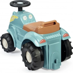 Ce porteur tracteur, en coloris turquoise/bleu avec assise marron et larges roues noires, est conçu pour les plus petits. Grâce à son corps en plastique robuste et à sa large voie, la conduite est stable et sûre, tandis que ses dimensions compactes facilitent l’utilisation en intérieur, sur tapis comme sur sol lisse.