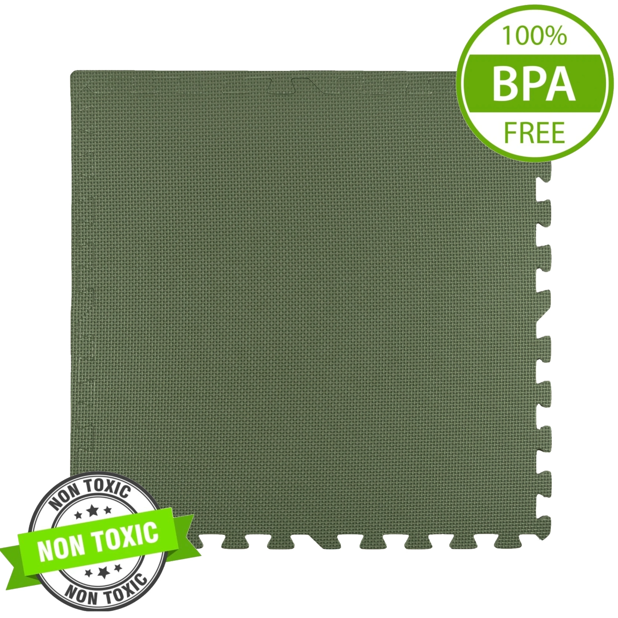 Tapis en mousse EVA doux et sûr de couleur kaki, protège du froid et amortit les chutes, il est imperméable, facile à nettoyer et évolue avec l’enfant. Le lot comprend 3 grandes pièces de 60 × 60 cm et 6 bordures, pouvant être assemblées en une surface plus grande ou en différentes formes. Conforme aux normes EN 71 et certifié CE.