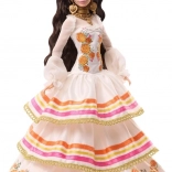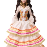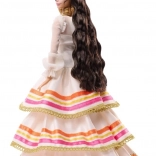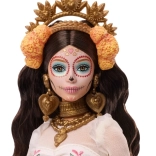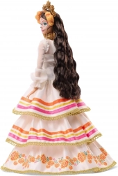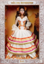 Cette poupée de collection BARBIE rend hommage à la fête Dia de Muertos. Elle se distingue par des détails minutieux : robe blanche à volants avec broderie florale, diadème doré et bijoux audacieux qui soulignent le caractère cérémoniel. De longs cheveux ondulés et un visage peint façon tête de mort sucrée lui confèrent une allure authentique.