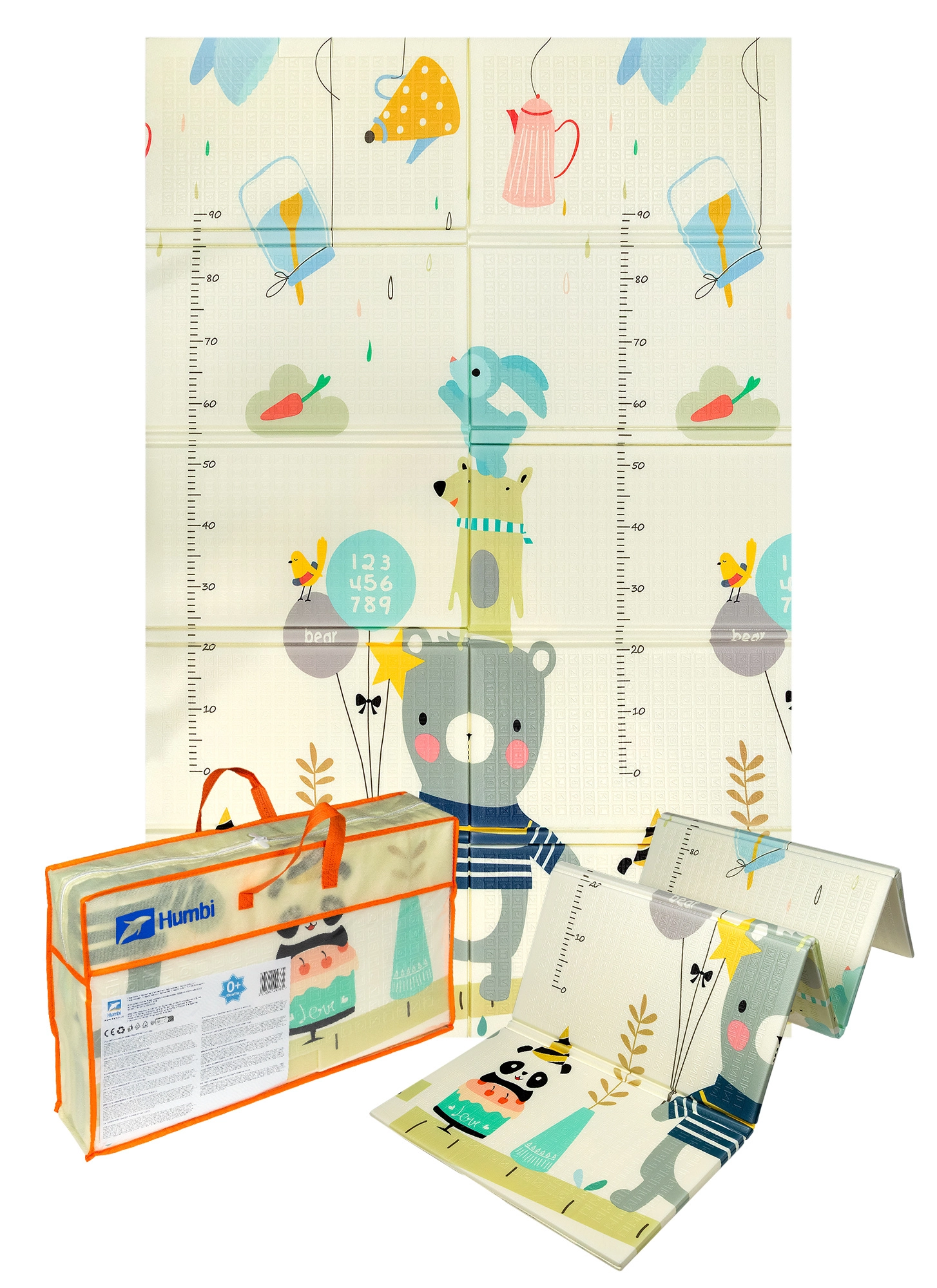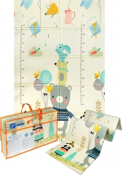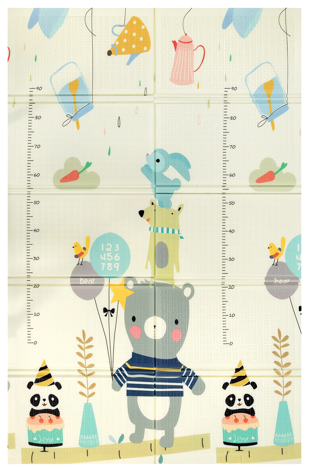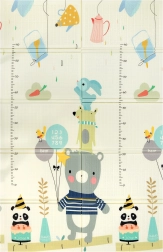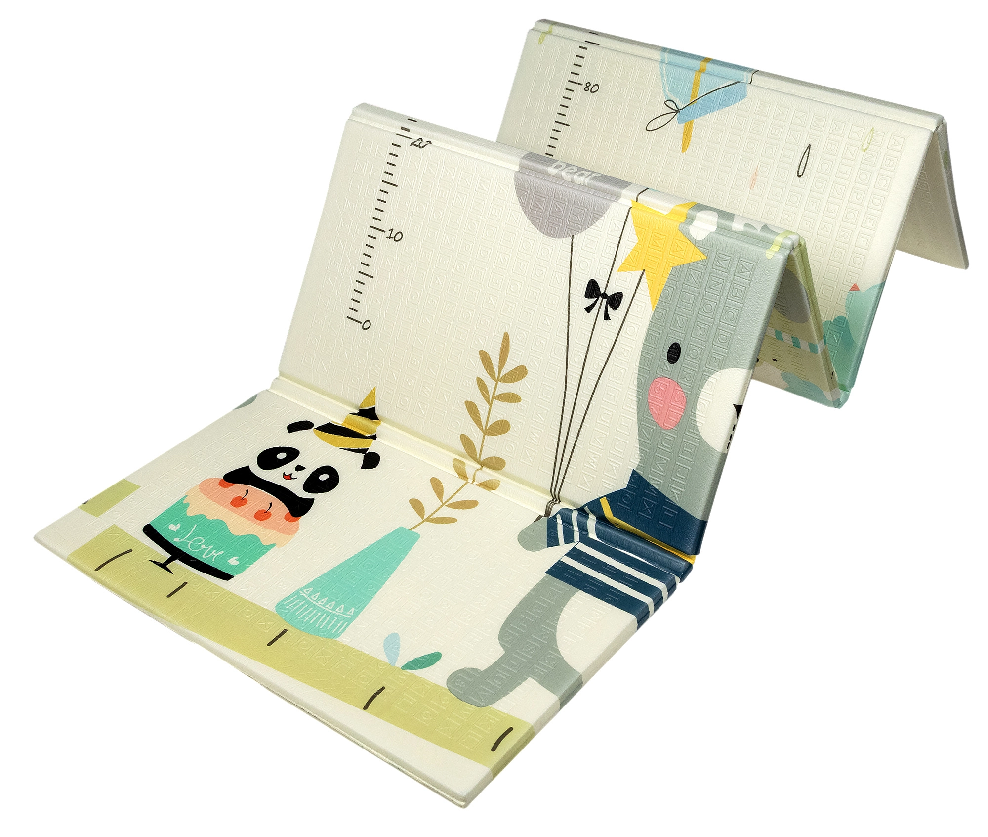Découvrez un tapis polyvalent qui accompagne la croissance de votre enfant dès les premiers jours. Grâce à son épaisseur de 1 cm, il isole efficacement du froid et amortit les chocs, idéal pour jouer en toute sécurité, ramper et faire ses premiers pas. Son design réversible propose d’un côté de jolies pandas et de l’autre des animaux avec chiffres et toise, favorisant l’éveil précoce et l’apprentissage.