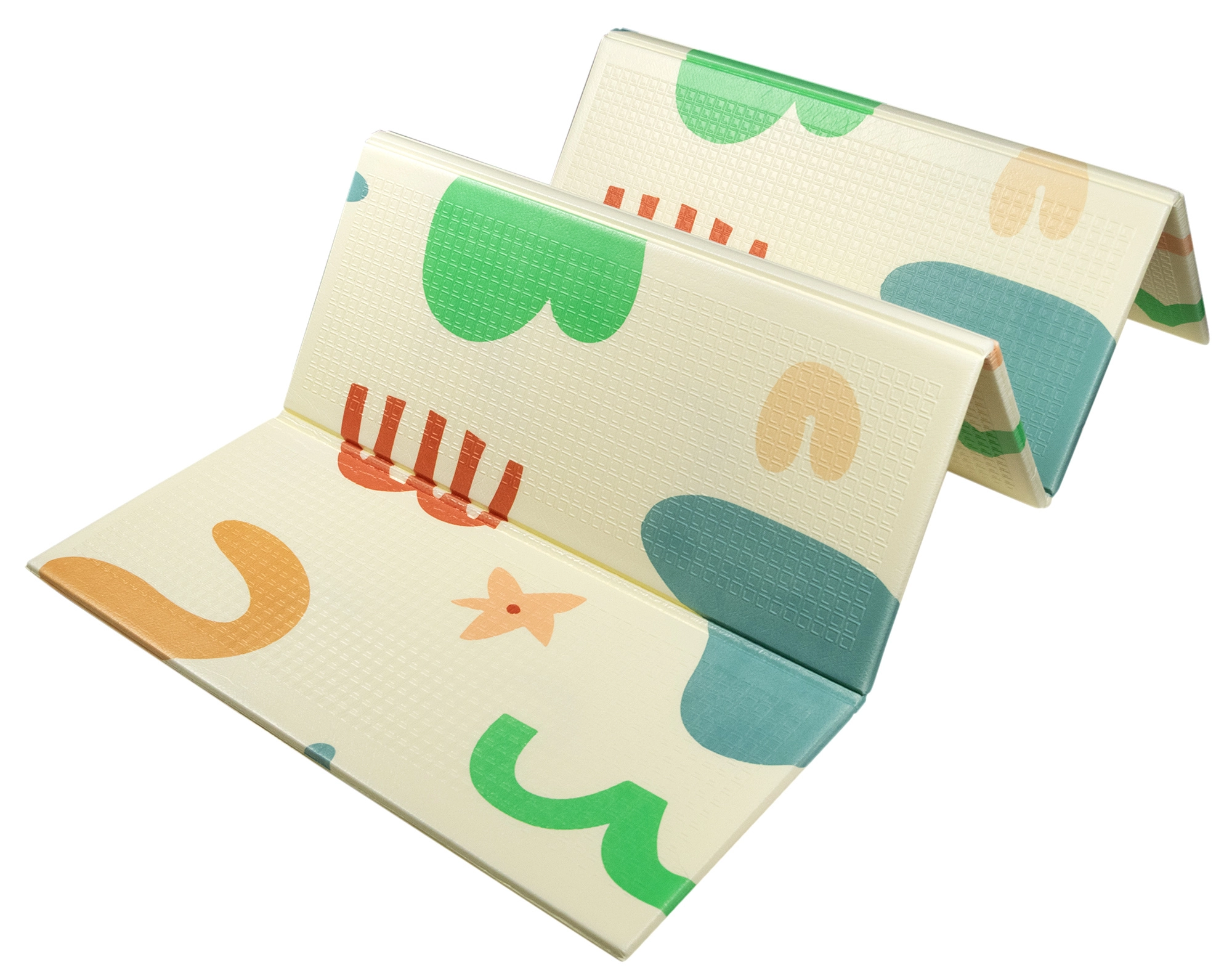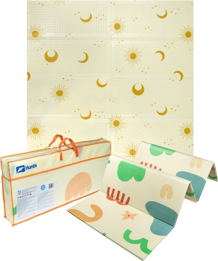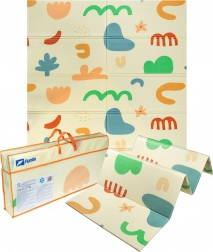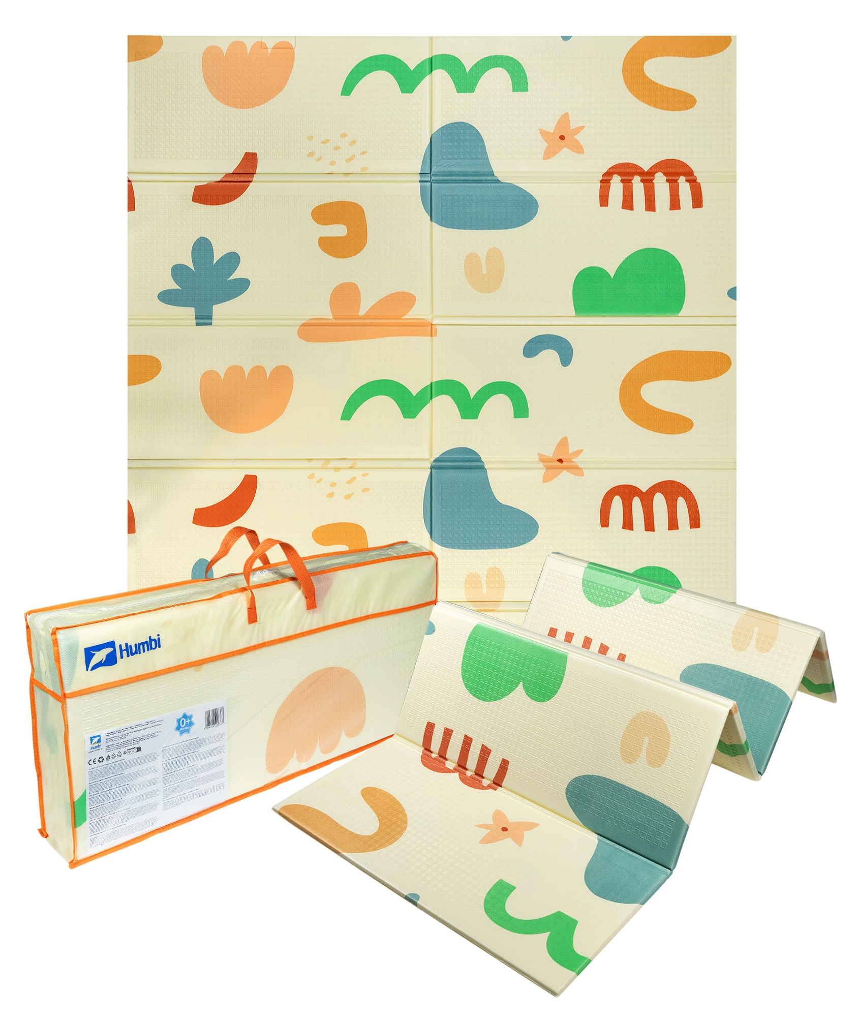 Grand tapis en mousse réversible, souple et doux en XPE offrant aux enfants dès la naissance un espace sûr et confortable pour jouer, ramper et faire leurs premiers pas. Il est pliable, léger, imperméable et facile à nettoyer, et il est livré avec un sac de transport pratique. Conforme aux normes EN71 et certifié CE, il ne contient aucun phtalate, formamide, BPA ni PVC.