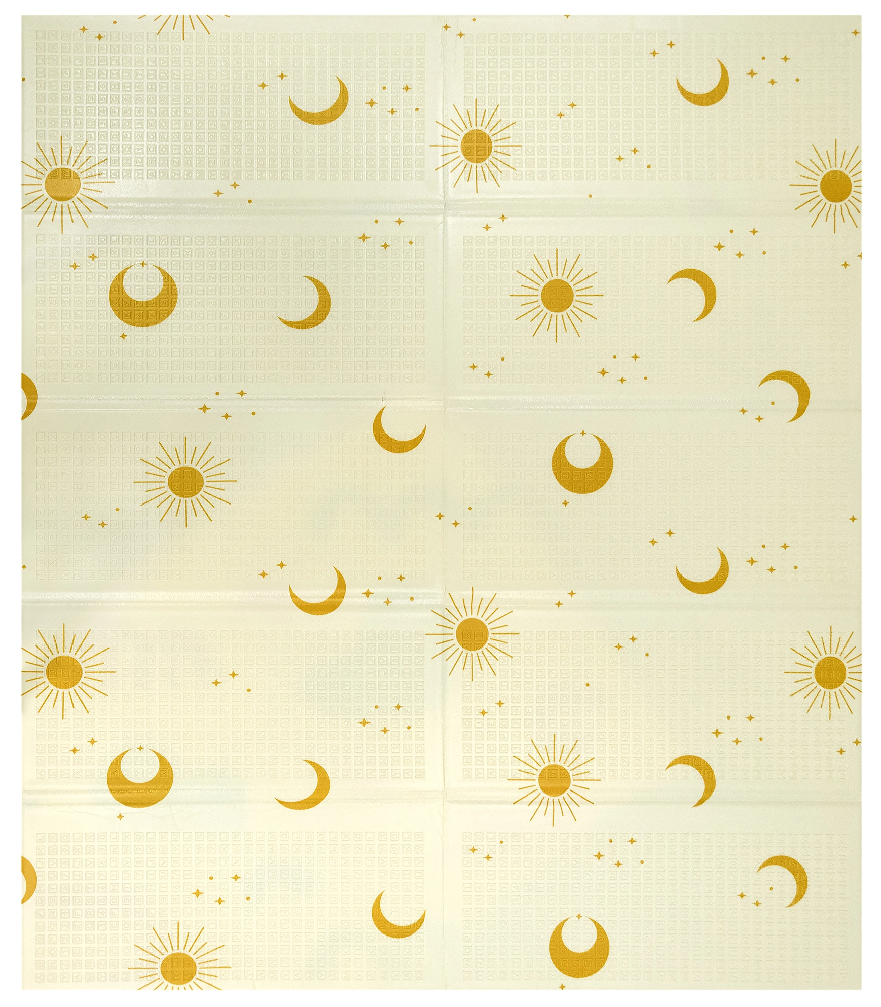 Mousse XPE premium offrant une excellente absorption des chocs, une isolation thermique contre le sol froid et une longue durée de vie, sans odeur ni substances toxiques. Idéale pour la chambre d’enfant, le salon ou l’extérieur – balcon, jardin ou pique-nique. L’impression réversible aux couleurs douces, avec des motifs de soleil et de lune et des formes colorées, stimule la perception et s’intègre aux intérieurs modernes.