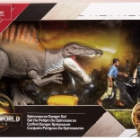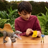 Ce set de la marque Mattel propose un Spinosaurus fidèlement reproduit avec une voile dorsale marquée, une mâchoire ouvrable et des articulations mobiles. Deux figurines humaines avec accessoires – arme, outils et caisse de transport jaune – enrichissent les possibilités de jeu et permettent de créer des scènes palpitantes de poursuite et de sauvetage.