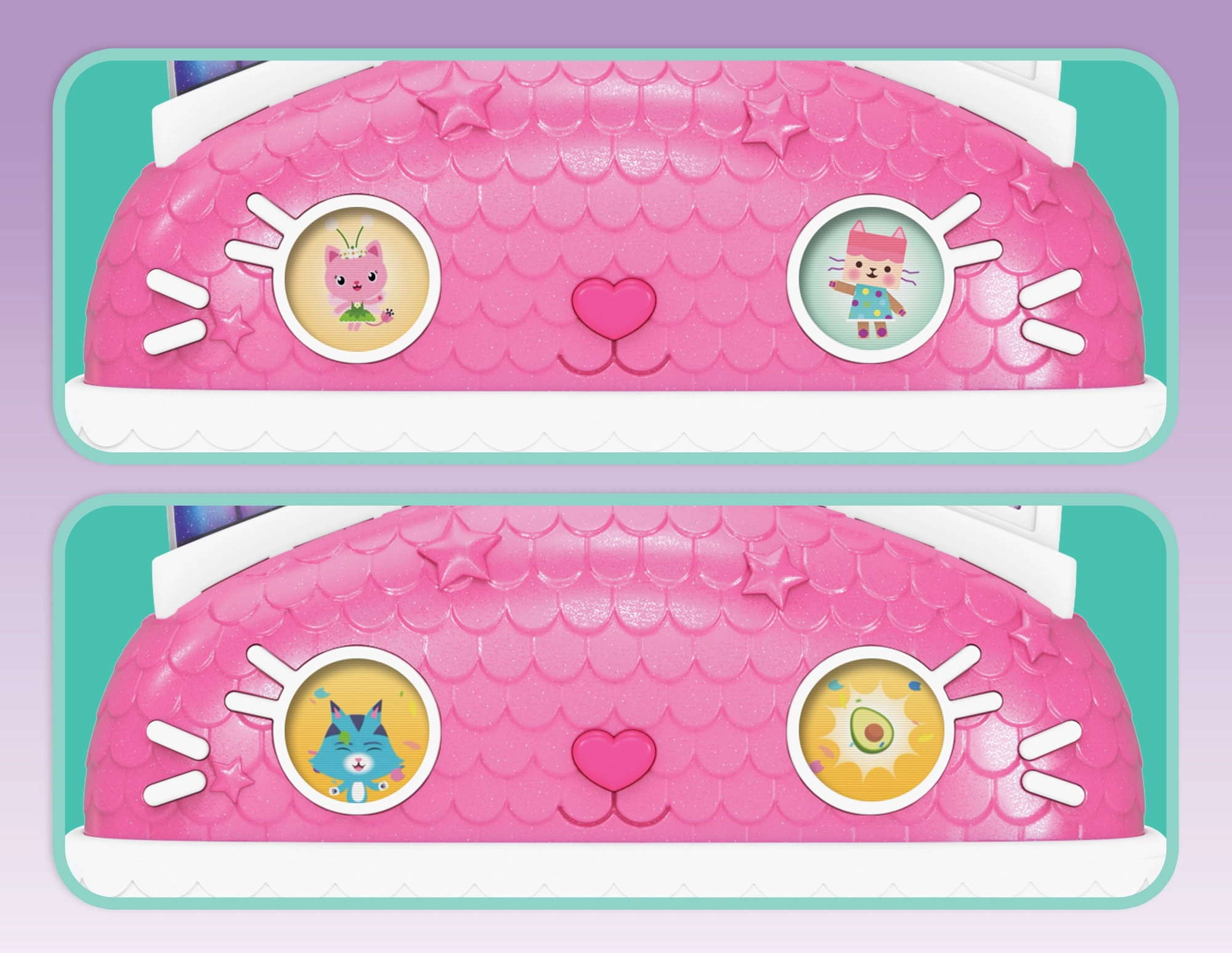 Inclus: poupée Gabi, mobilier, accessoires, sets d’yeux interchangeables et autocollants. Découvrez 6 modes dont les jeux « Chat du jour » et « Trouve-le ».