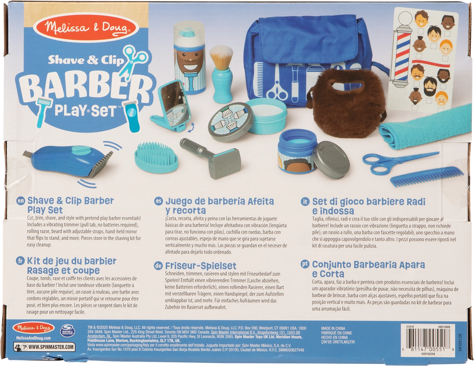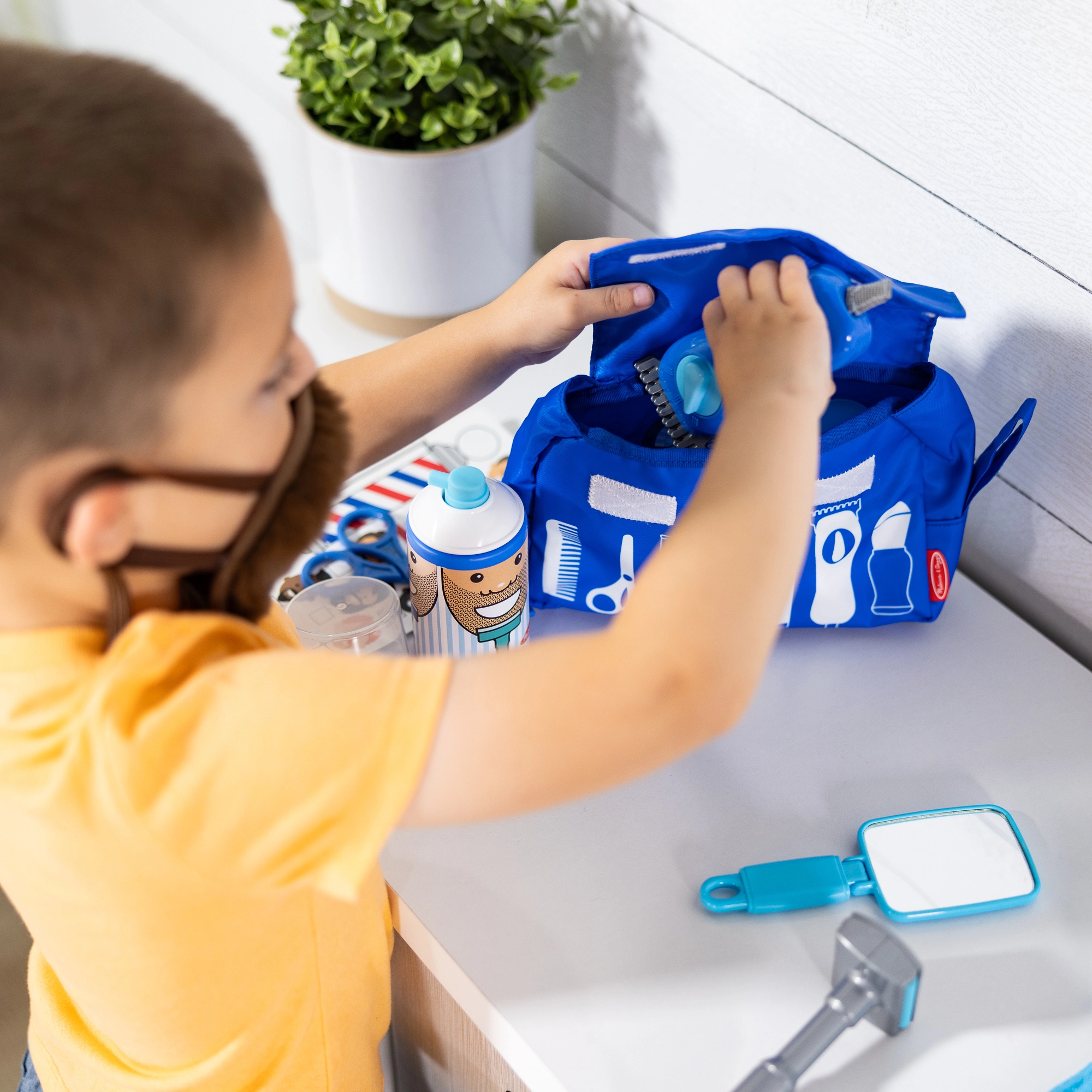 Plongez les enfants dans un monde d’imagination avec ce set de barbier complet pour petits stylistes. Ce riche assortiment d’accessoires bleus apporte des outils réalistes pour imiter la coupe, le rasage et la mise en forme des cheveux. Il comprend aussi une fausse barbe souple à enfiler pour rendre le jeu de rôle encore plus amusant.
