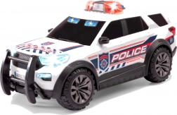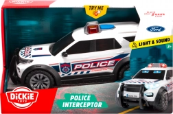 La voiture de police FORD INTERCEPTOR séduit par ses finitions détaillées en blanc avec inscriptions Police et éléments visuels percutants. En appuyant sur le bouton sur le toit, les effets lumineux et sonores s’activent – gyrophares rouges et bleus et sirène réaliste – stimulant l’imagination des enfants et les jeux d’action.