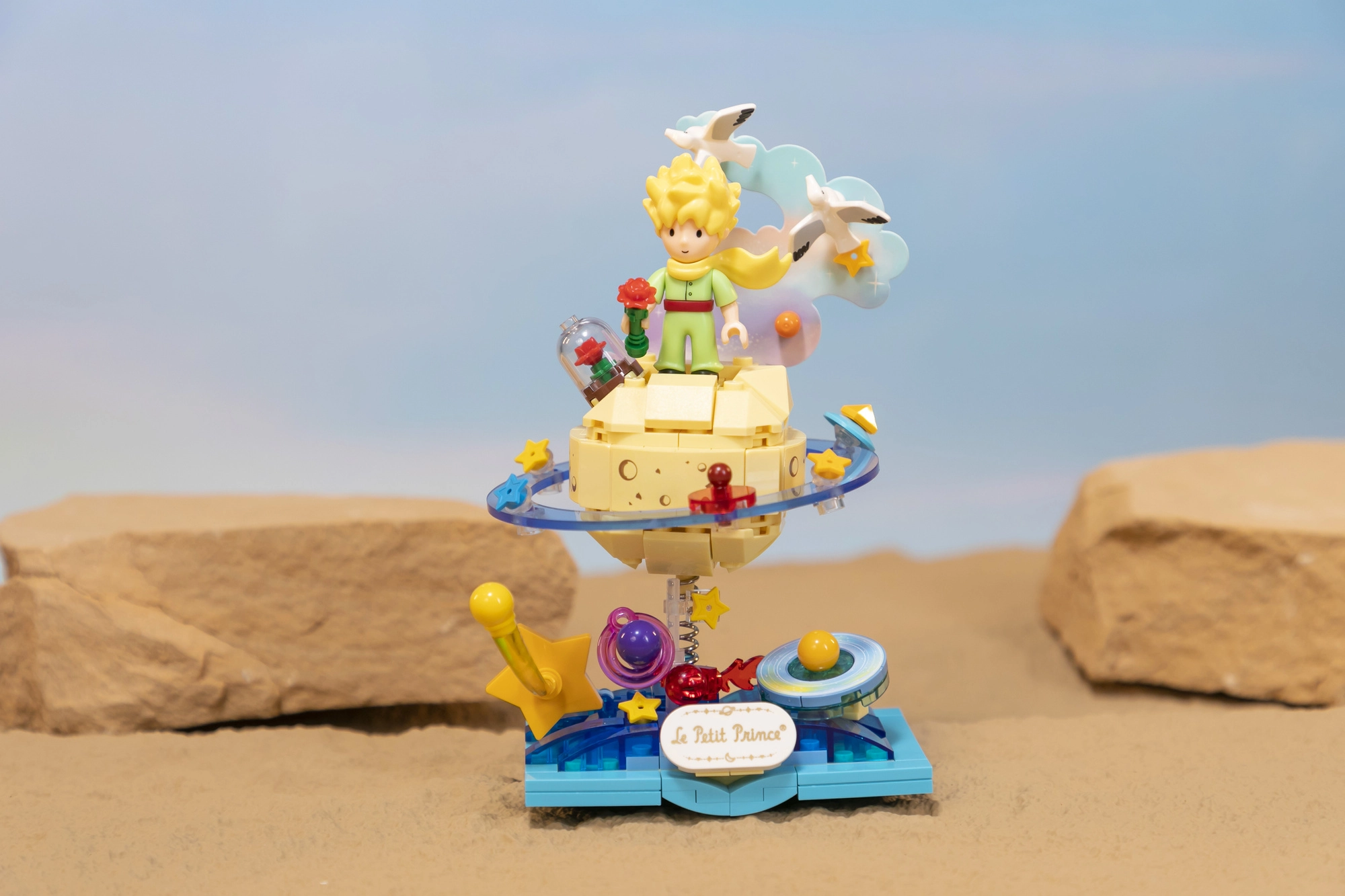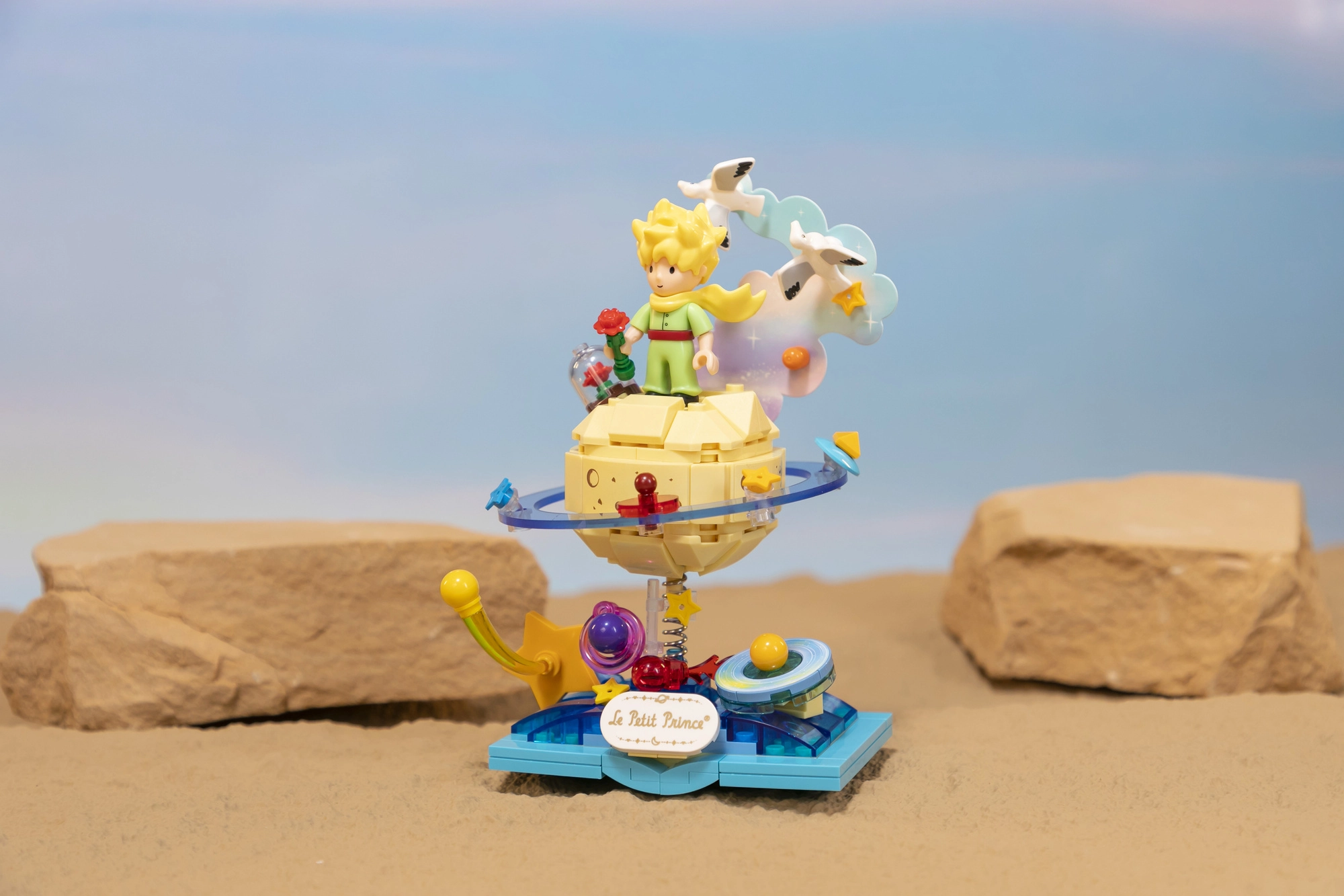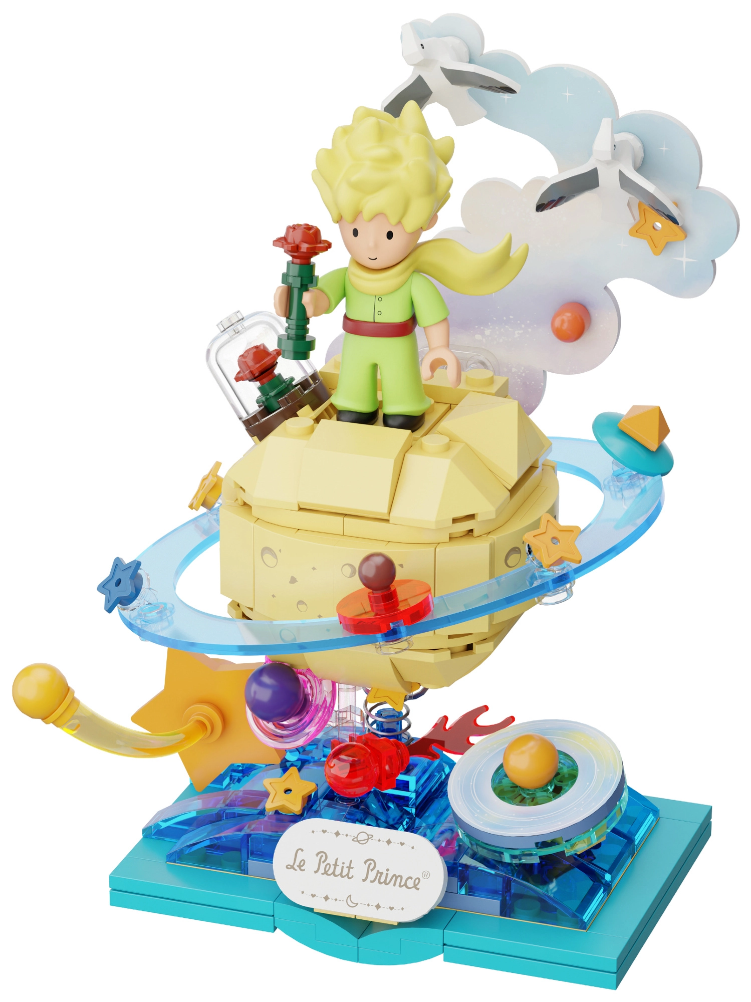 Cette scène de collection officiellement licenciée, inspirée par l’histoire du Le Petit Prince, marie nostalgie littéraire et design contemporain. Vous assemblez la figurine du Petit Prince debout sur une petite planète avec anneaux, étoiles et mini-planètes – pour une décoration élégante qui attire immédiatement le regard.