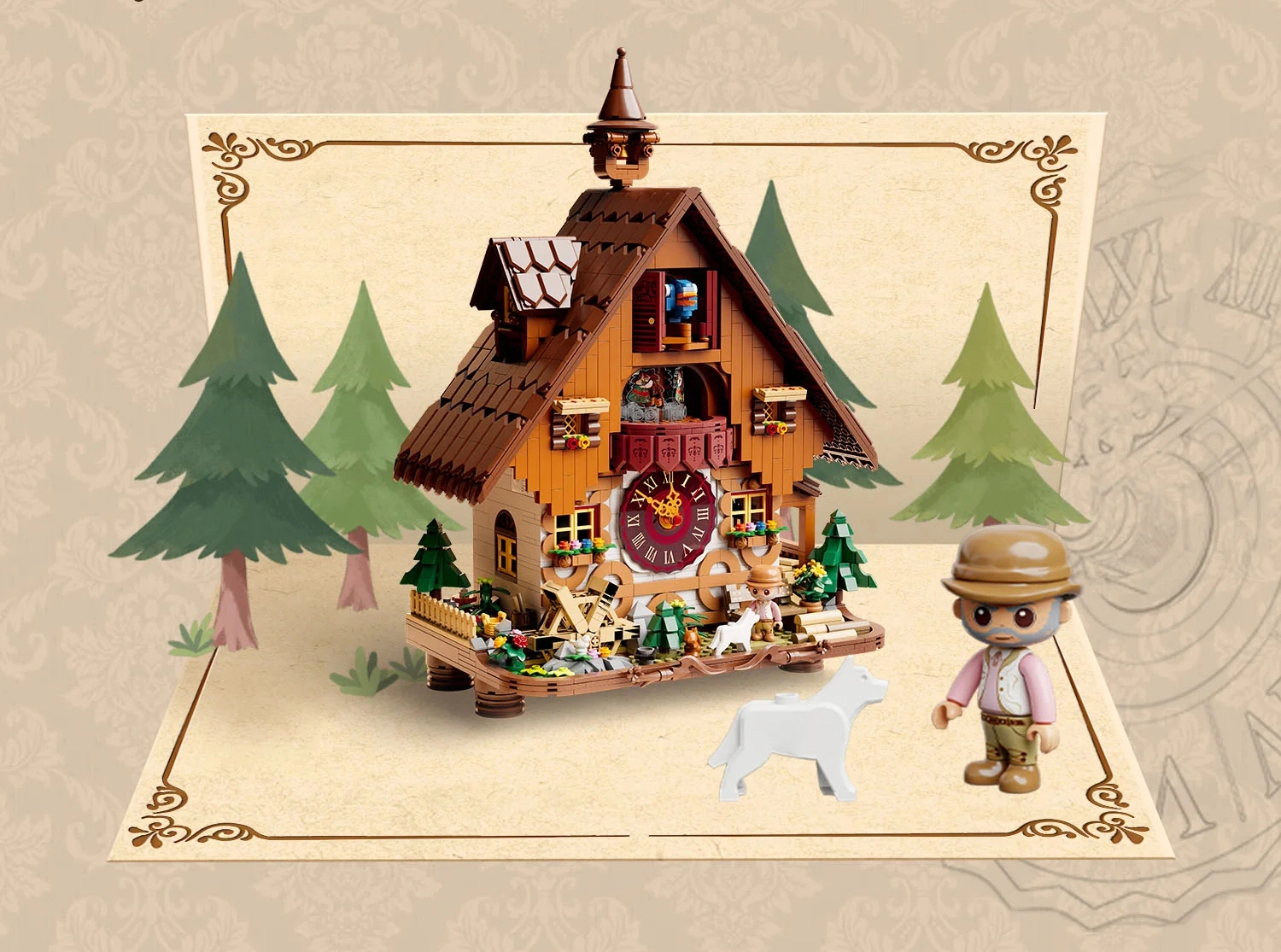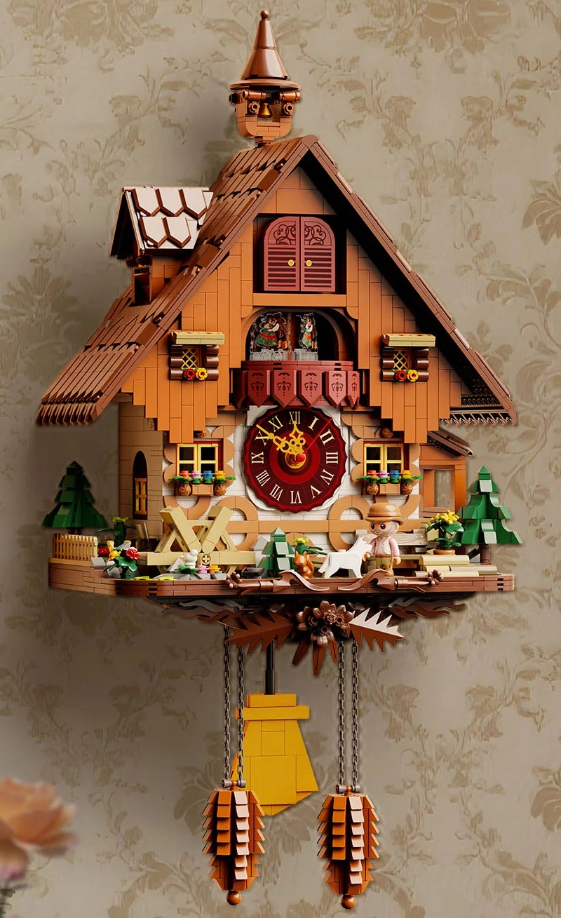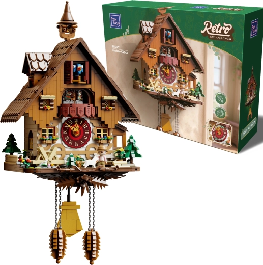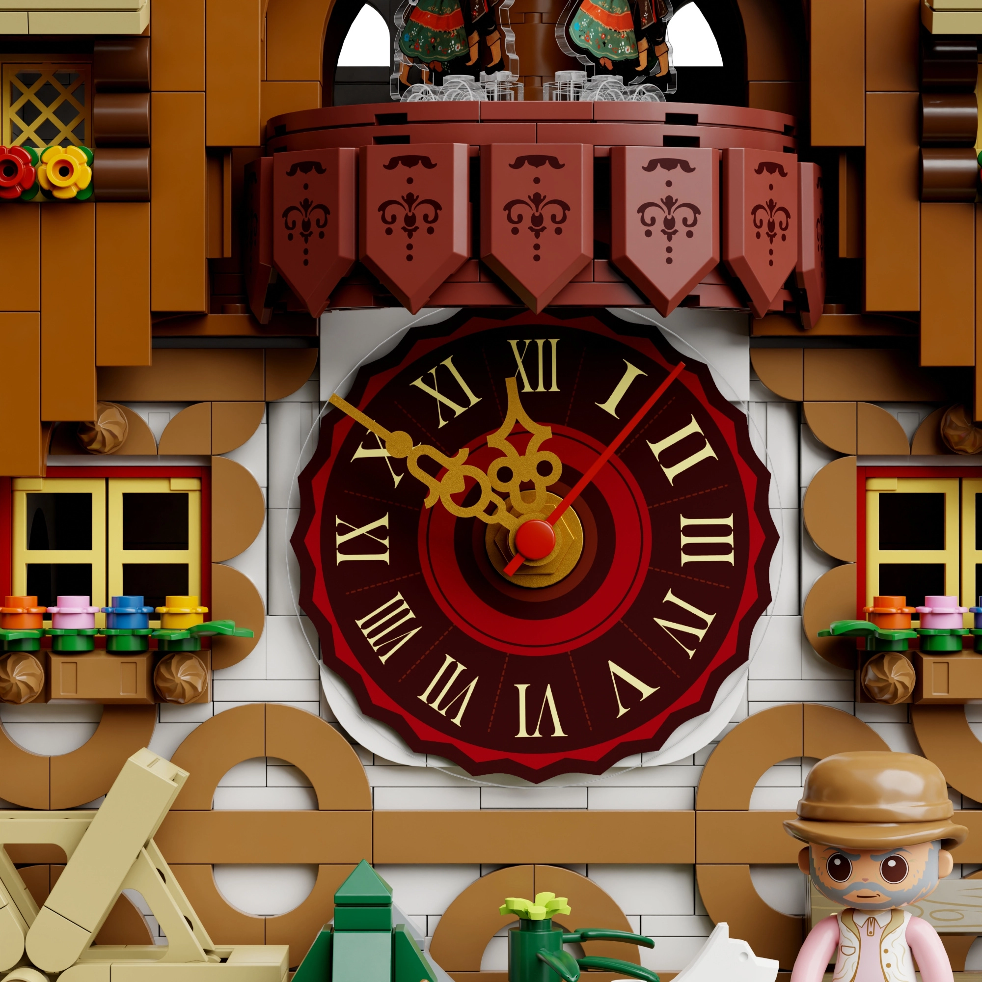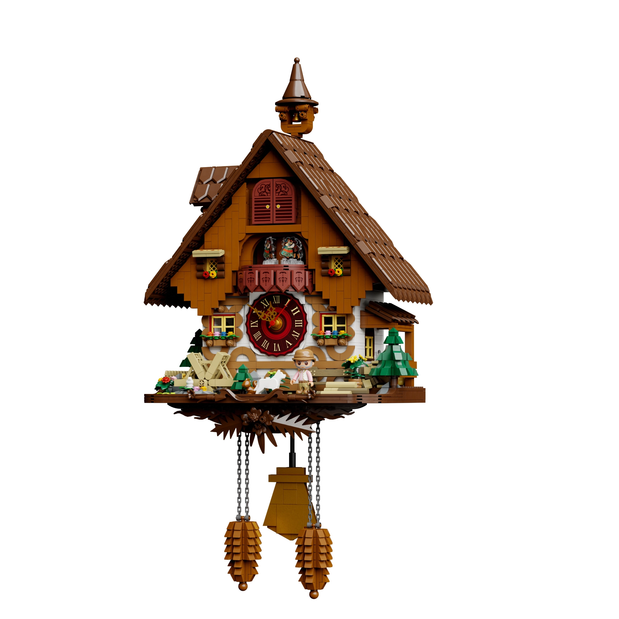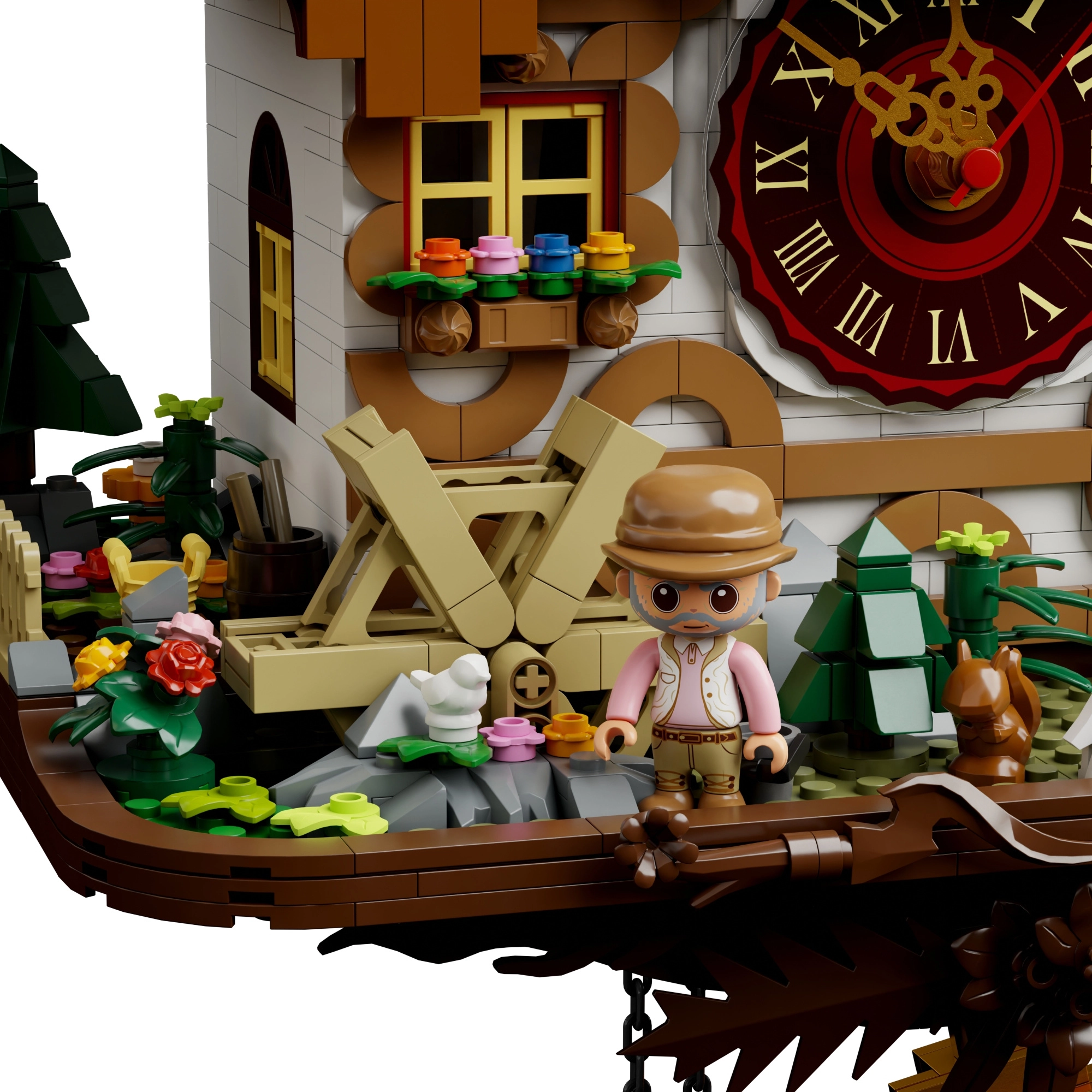 L’horloge coucou rétro de style alpin est un set d’exception pour les amateurs de modèles et de design. Une fois assemblée, vous obtenez une horloge décorative fonctionnelle avec cadran analogique, pendule, chaînes avec poids et une riche ornementation – des volets fleuris aux minifigurines, jusqu’aux détails du chalet de montagne.