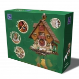 Le coucou sort de ses petites portes, le pendule oscille et les accessoires tournent grâce à un moteur séparé – le modèle s’anime comme une véritable horloge.