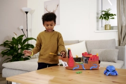 La pieuvre détachable avec effets lumineux et sonores éclaire ses yeux et “capture” la voiture ou d’autres pièces avec ses tentacules – idéal pour des scénarios pirates spectaculaires. Le bateau et le radeau flottent, parfaits pour le bain, la piscine ou la pataugeoire. Après la baignade, l’action continue sur le tapis grâce aux fonctions interactives et à la course fluide de la petite voiture.