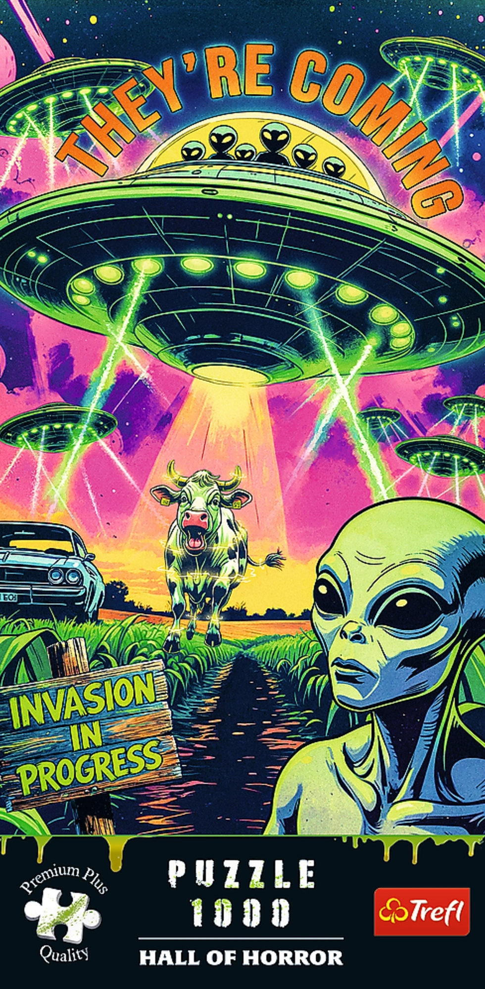 Pénétrez dans un univers de tension et de science-fiction avec la collection Hall of Horror. Ce puzzle sur le thème de l’invasion extraterrestre offre une expérience visuelle intense tout en apportant une détente apaisante pendant l’assemblage. Grâce à la plaque de carton la plus épaisse et aux formes de pièces uniques, l’assemblage est fluide et l’image finale nette et stable.