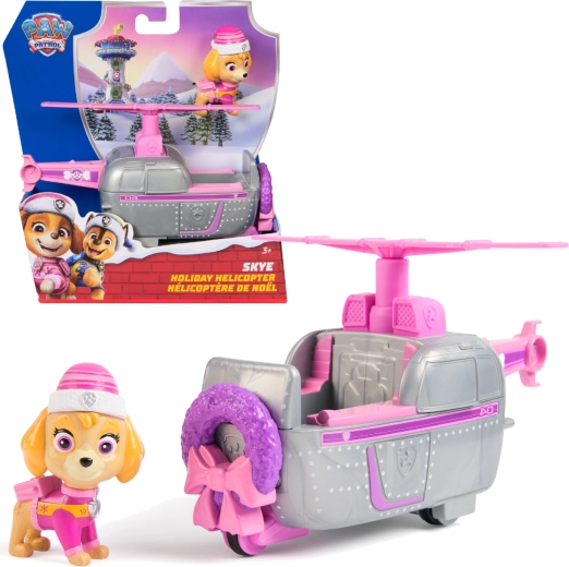 L’hélicoptère de Noël de Skye par Spin Master apporte aux enfants l’atmosphère authentique de la série PAW PATROL. Le chic hélicoptère gris-rose avec couronne festive à l’avant dispose d’un cockpit ouvrant dans lequel on peut installer la figurine de Skye avec bonnet d’hiver. Grâce au rotor tournant et aux trois roues, les enfants profitent aussi bien des atterrissages que du « vol » à travers la chambre.