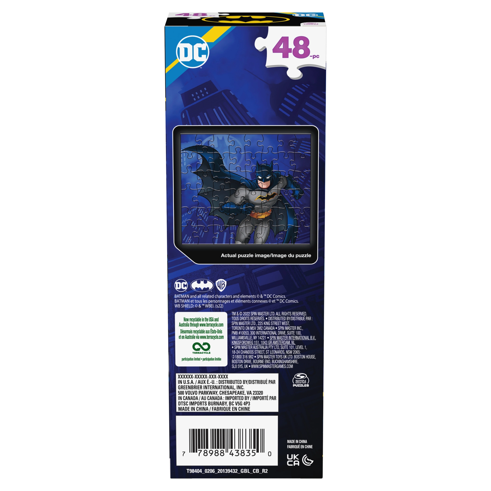 Puzzle pour enfants avec le motif BATMAN de la marque Spin Master, comprenant 48 pièces et formant une image de 26,2 × 23,1 cm une fois assemblé. Un excellent divertissement pour développer la concentration, la patience et la pensée logique – idéal comme cadeau original pour les jeunes fans de l’univers DC Comics.
