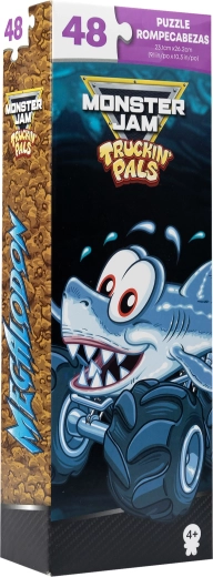 Découvrez le plaisir avec le puzzle MONSTER JAM Truckin' Pals, qui, une fois assemblé, révèle une image dynamique du monster truck Megalodon rappelant un requin. Grâce à ses 48 pièces solides, ce puzzle est idéal pour les enfants dès 4 ans qui débutent dans l’assemblage.