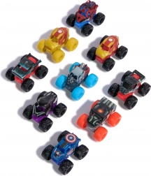 - 3 mini monster trucks (Thor, Black Panther, Iron Man)