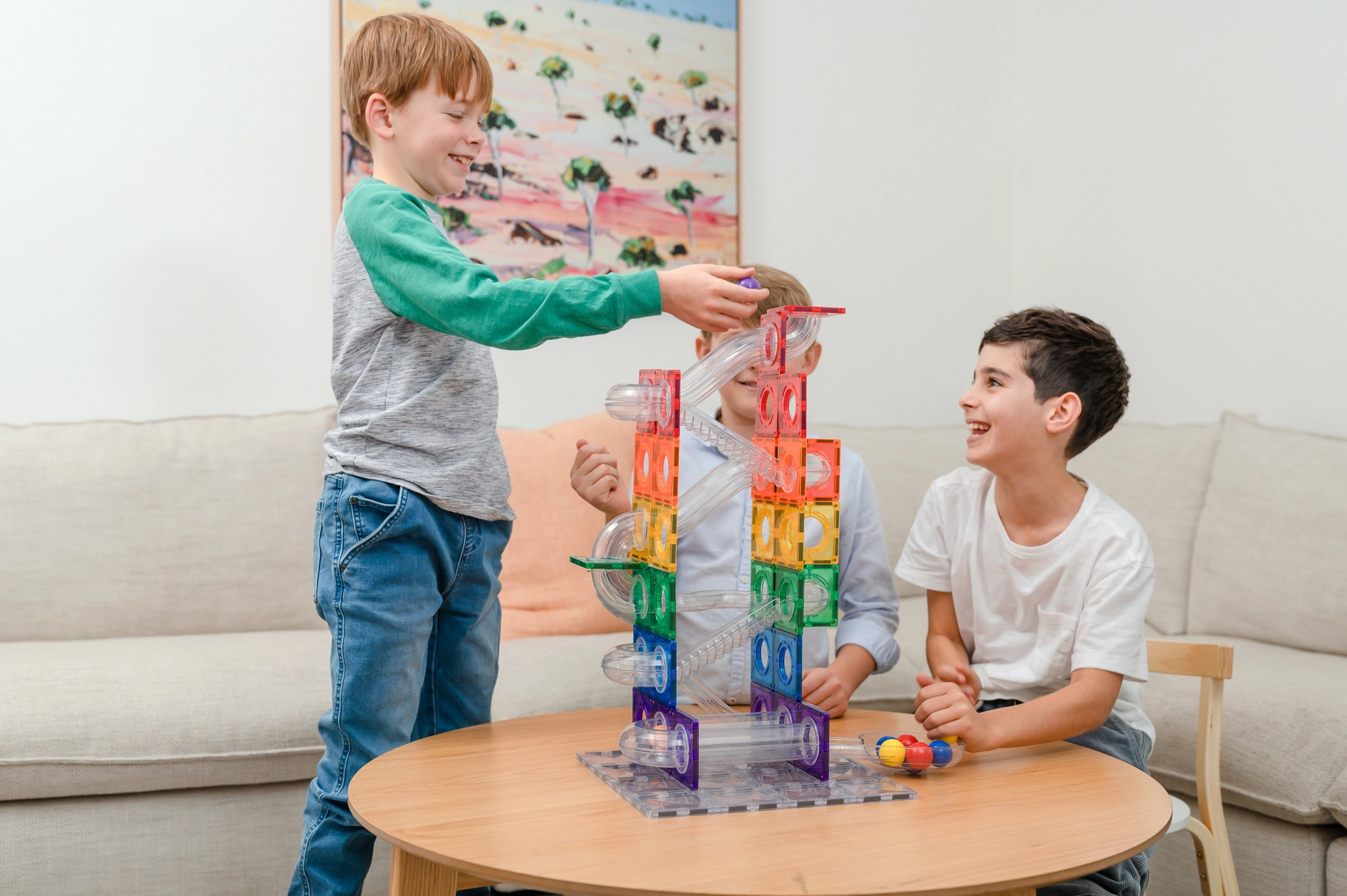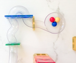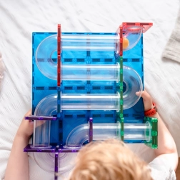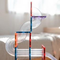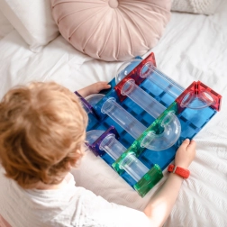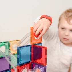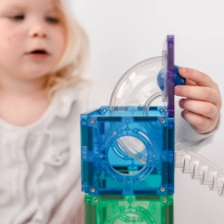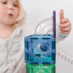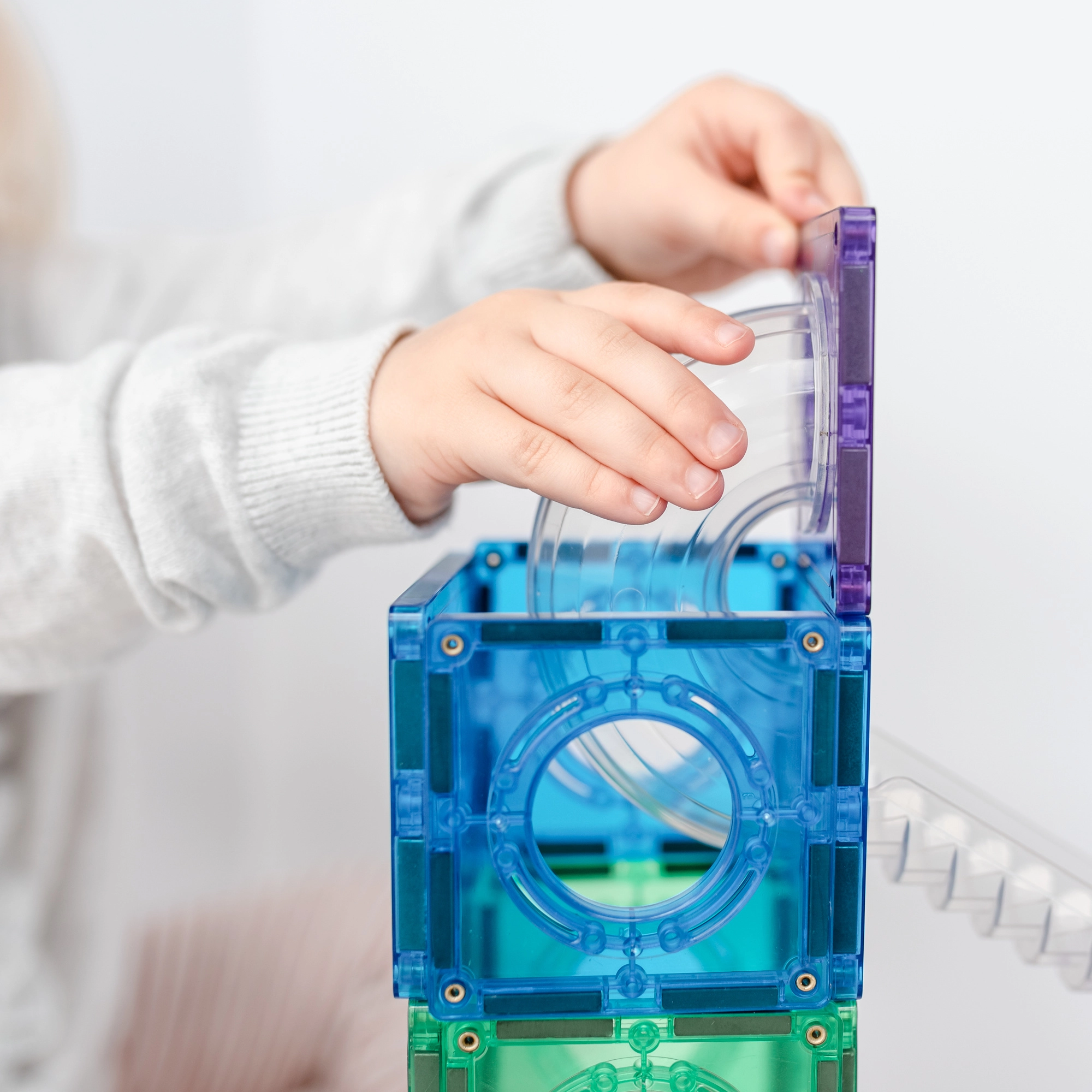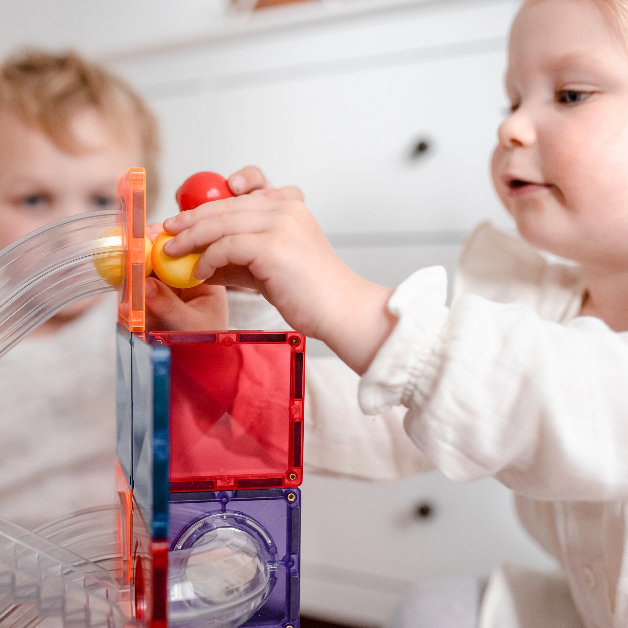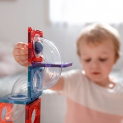 Assemblez des tours colorées, des ponts et des parcours de billes élaborés, suivez le trajet des billes à travers des tunnels transparents et découvrez les principes de la gravité, de la vitesse et de l’équilibre. Les tuiles Connetix aux couleurs de l’arc‑en‑ciel disposent d’aimants solidement rivetés qui s’attirent de tous les côtés, assurant une grande stabilité et un « clic » extrêmement satisfaisant lors de l’assemblage.