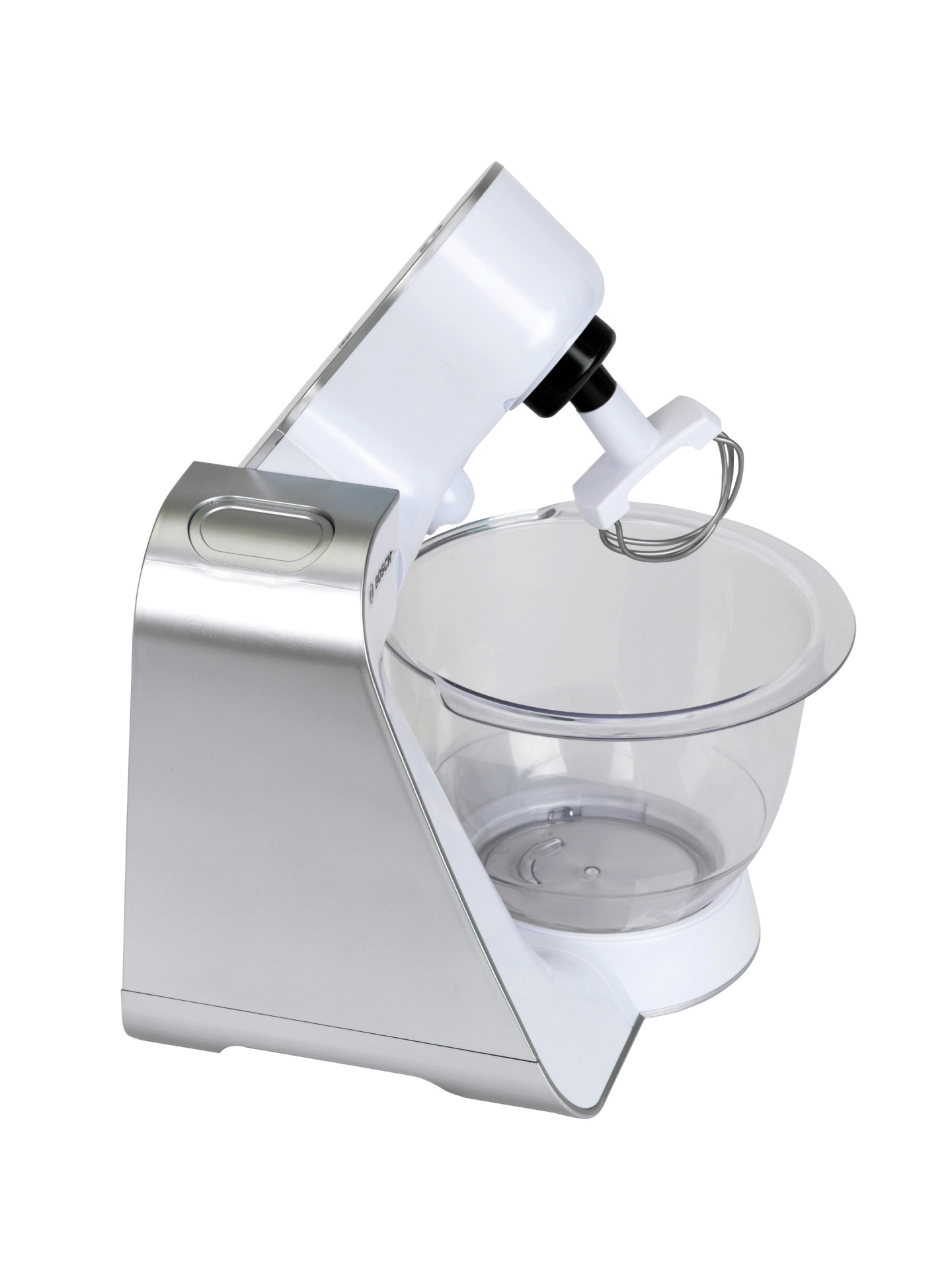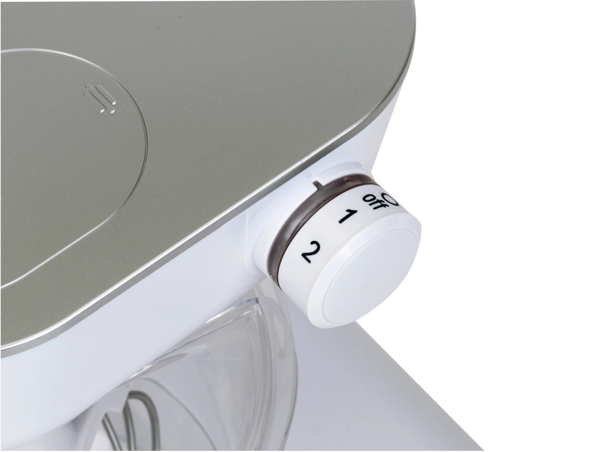 - 2 vitesses, lumière et son, bras inclinable, bol et fouet amovibles